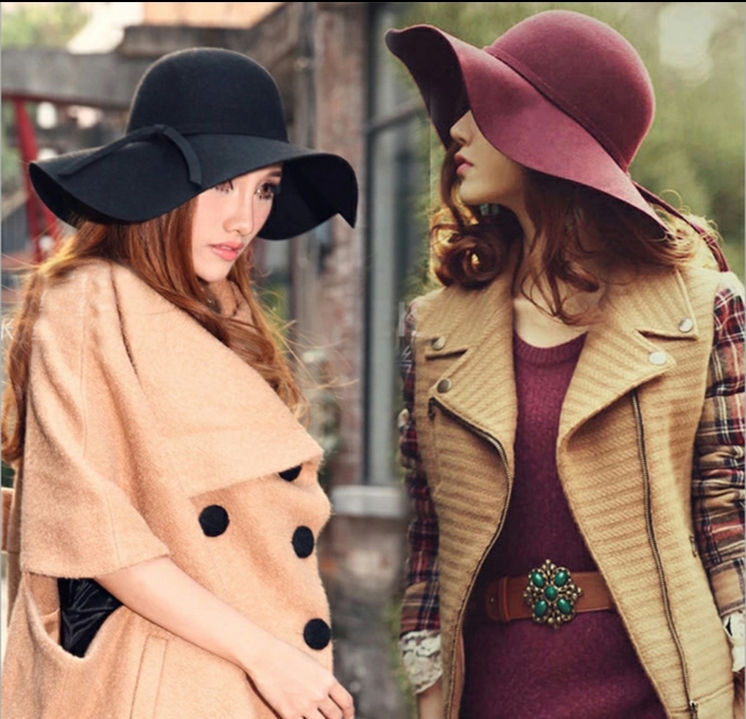 Mũ chống nắng rộng vành nữ nón đi biển đẹp fedora Chất liệu nỉ Hàng nhập