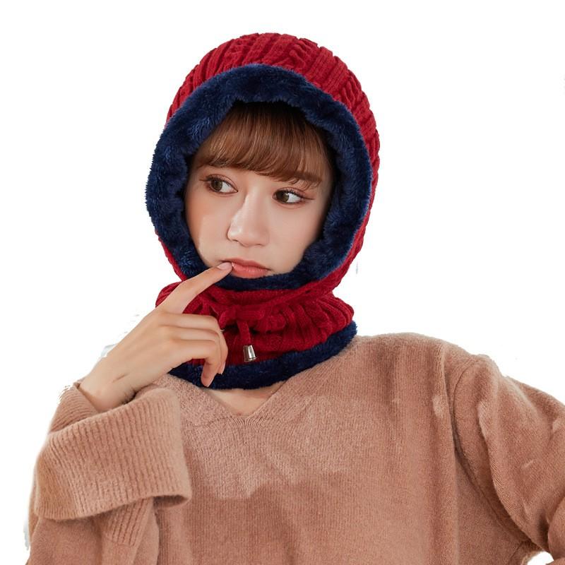 ✨Mũ len nữ trùm đầu liền khăn choàng cổ lót lông ấm áp thích hợp cả nam và nữ