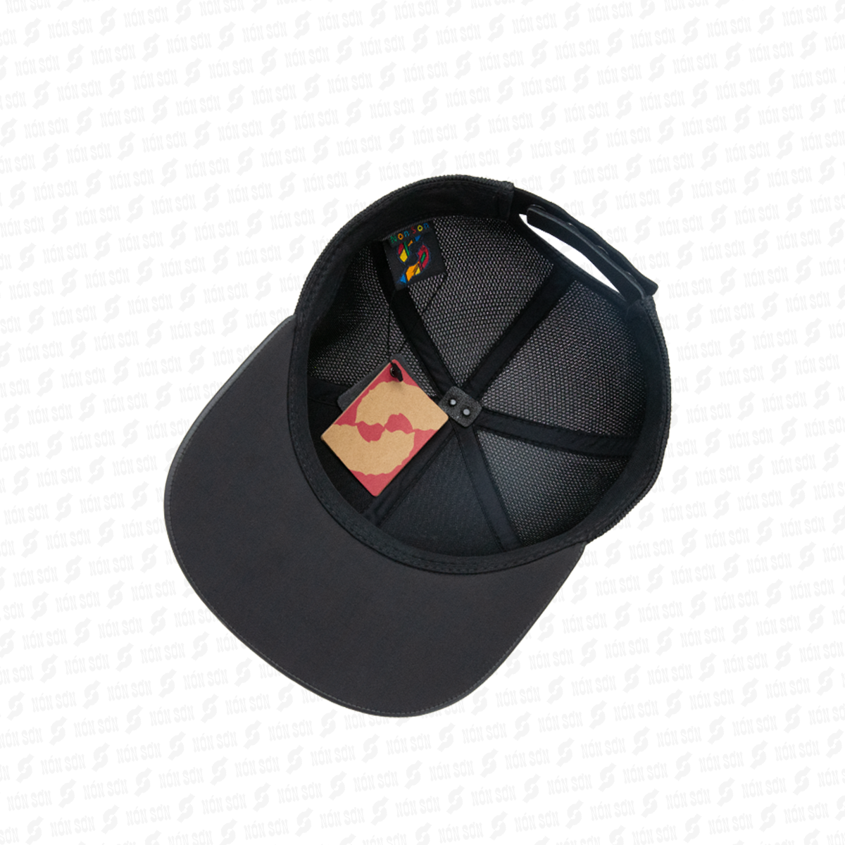 • Sử dụng kẹp phơi vào đai bên trong nón (vị trí giữa lưỡi trai), sao cho lưỡi nón hướng phía trên và dây đuôi hướng phía dưới.