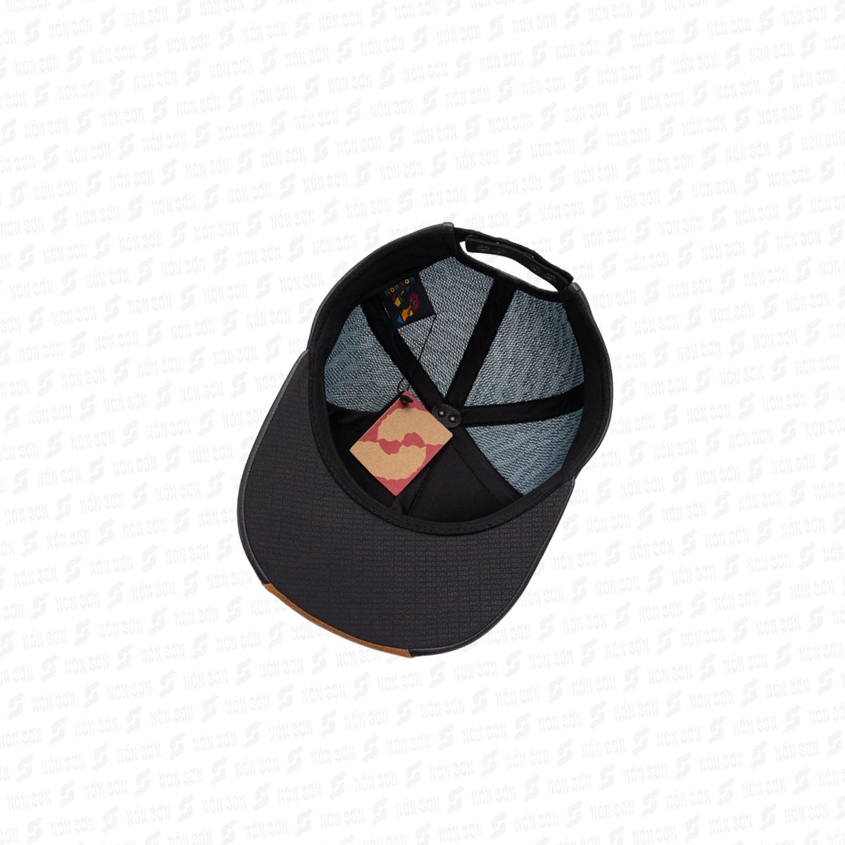- Sử dụng kẹp phơi vào đai bên trong nón (vị trí giữa lưỡi trai), sao cho lưỡi nón hướng phía trên và dây đuôi hướng phía dưới.