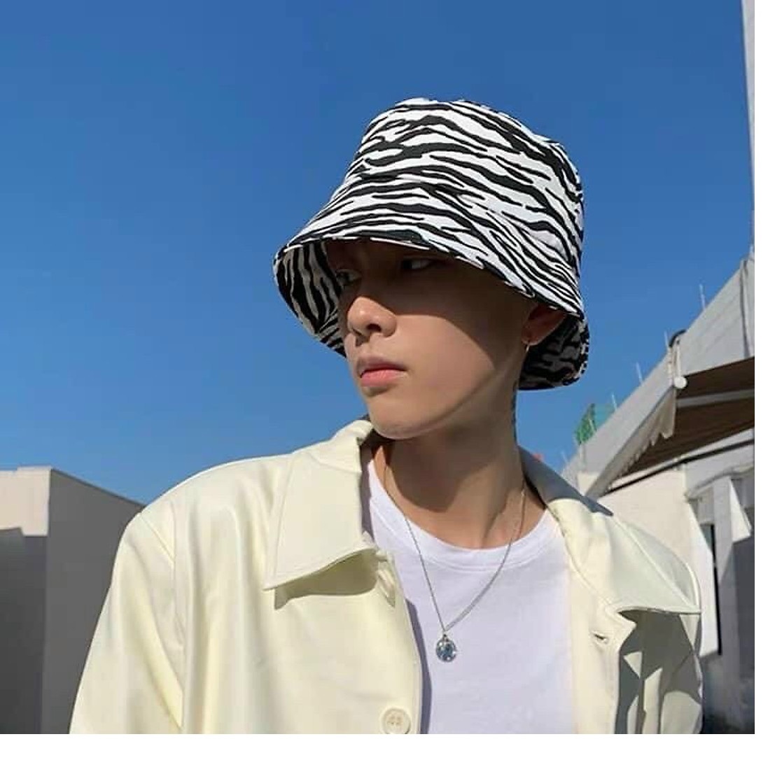 - Chất liệu: Thô - Màu sắc: Đen pha trắng - Họa tiết: bò sữa, vằn - Mũ thiết kế kiểu dáng thời trang, duyên dáng vừa có tác dụng che nắng vừa là phụ