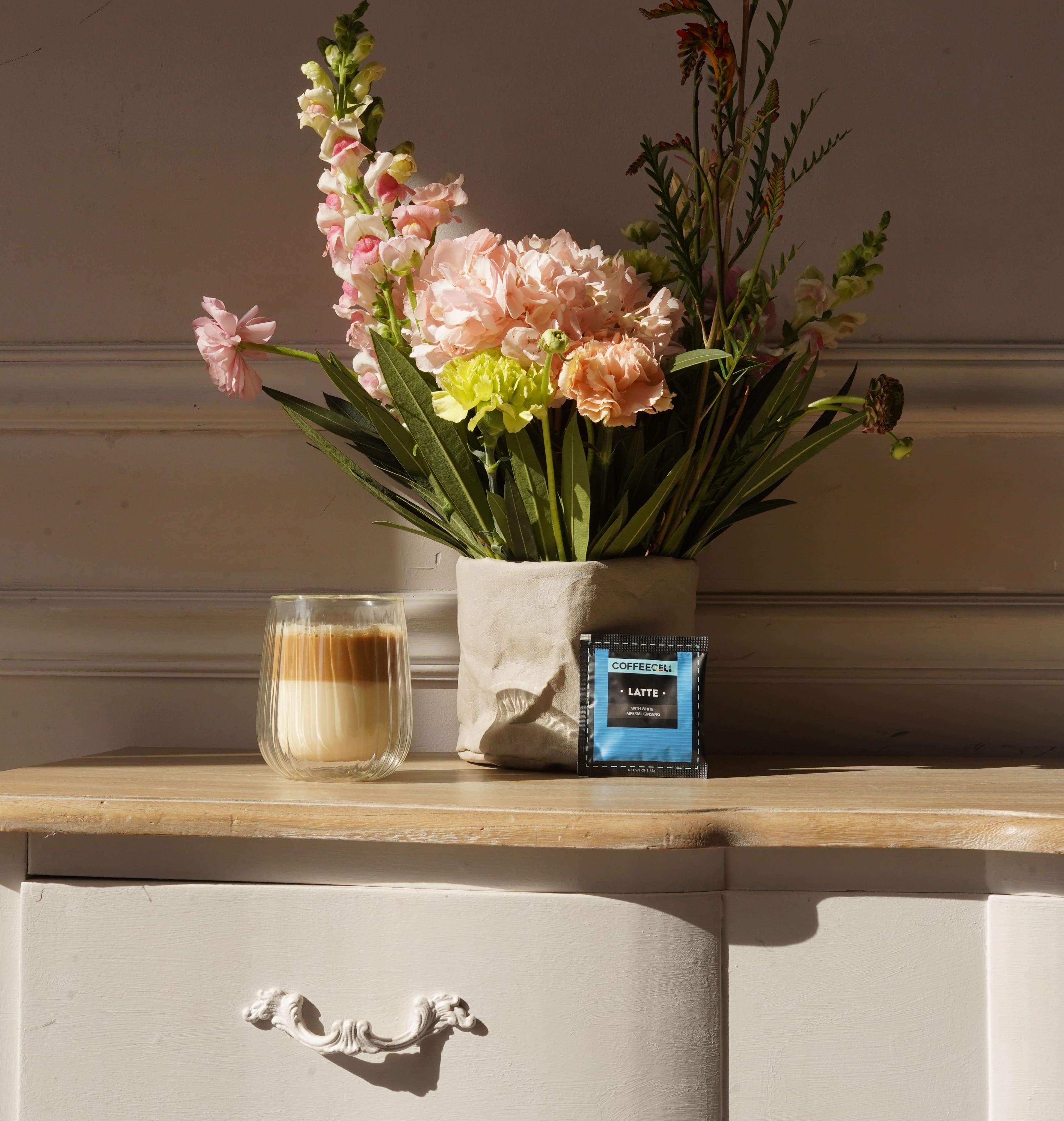 CÀ PHÊ LATTE NHÂN SÂM HOÀNG ĐẾ - COFFEECELL Hương vị thơm nồng, Lớp bọt sữa mịn màng, Sức mạnh tự nhiên của nhân sâm Tỷ lệ kết hợp lý tưởng giữa cà phê, nhân