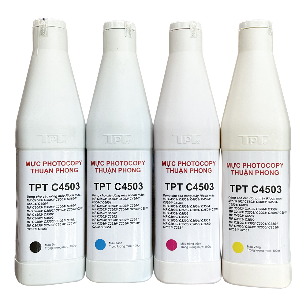 Mực đổ Thuận Phong C4503 dùng cho các dòng máy photocopy màu Ricoh sau:MP C4503/ C5503/ C6003/ C4504/ C5504/ C6004MP C3003/ C3503/ C3004/ C3504MP C2003/ C2503/ C2004/ C2504/ C2011MP C4502/ C5502...