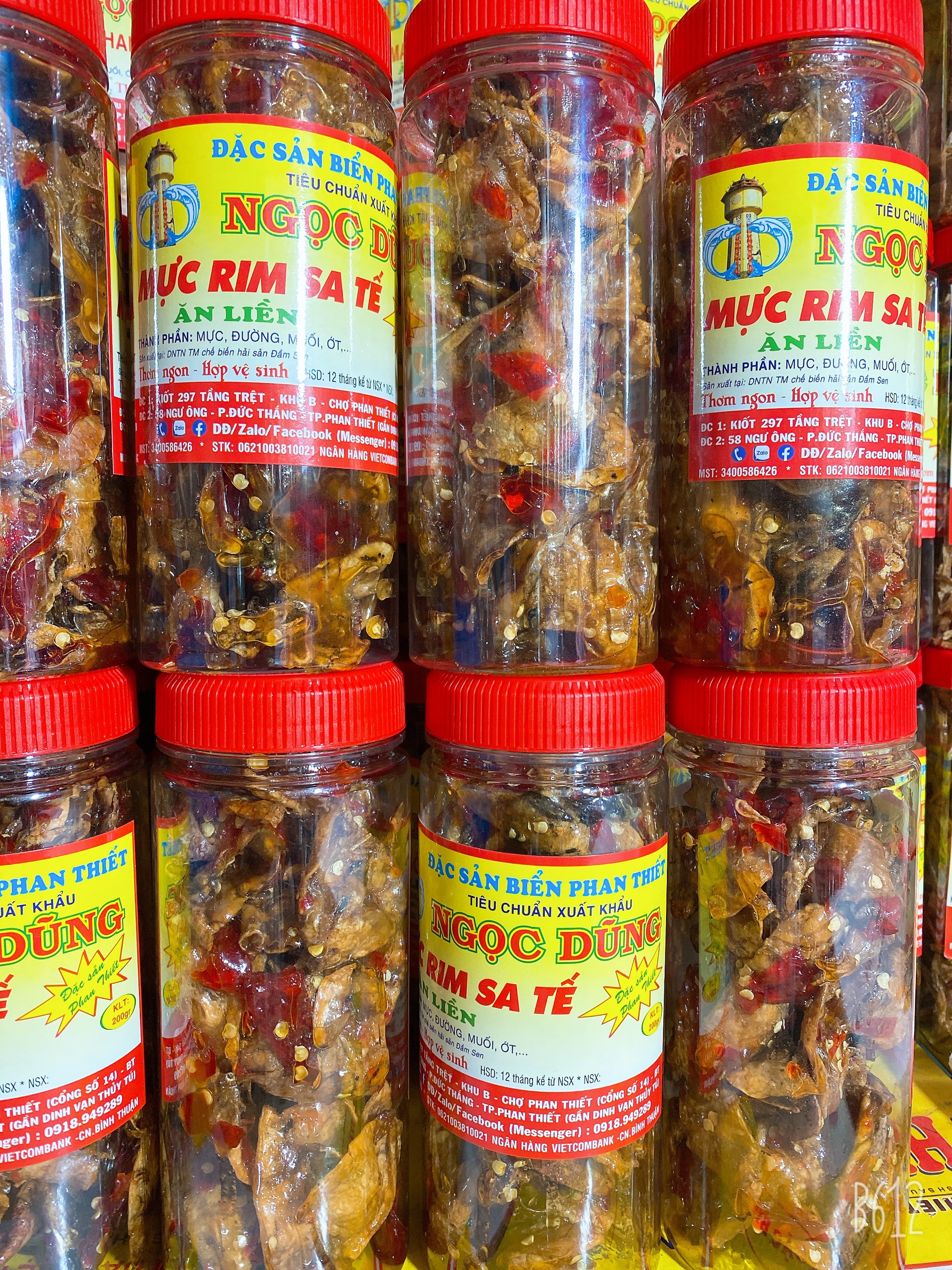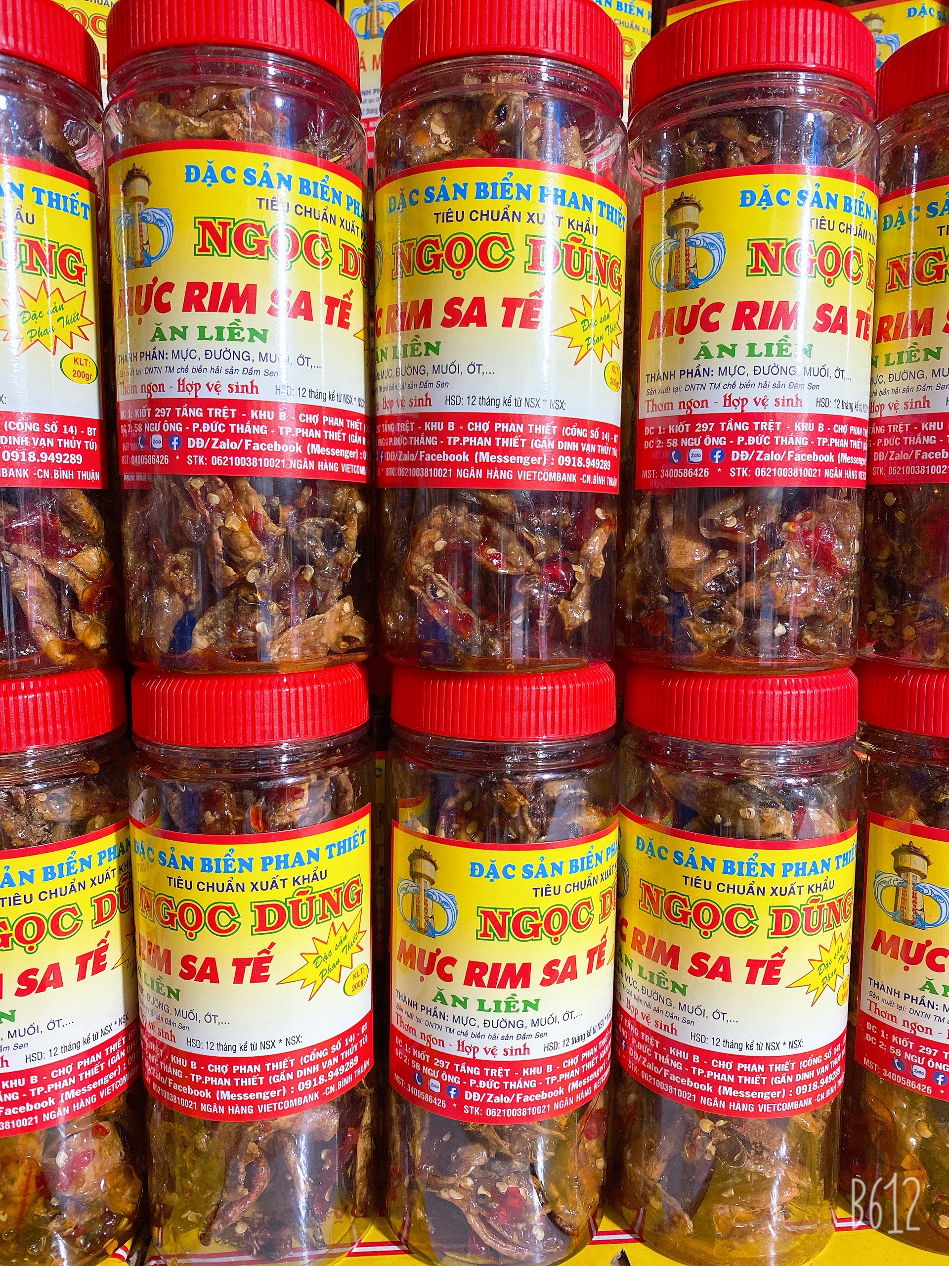 Mực rim sa tế ( ăn liền ) hộp 250 gram được chế biến từ mực ống hay mực lá còn tươi xanh tại Cảng cá Phan Thiết tỉnh Bình Thuận là món ăn ngon của Shop Đặc Sản Biển Phan Thiết NGỌC DŨNG.Từ lâu khô mự...