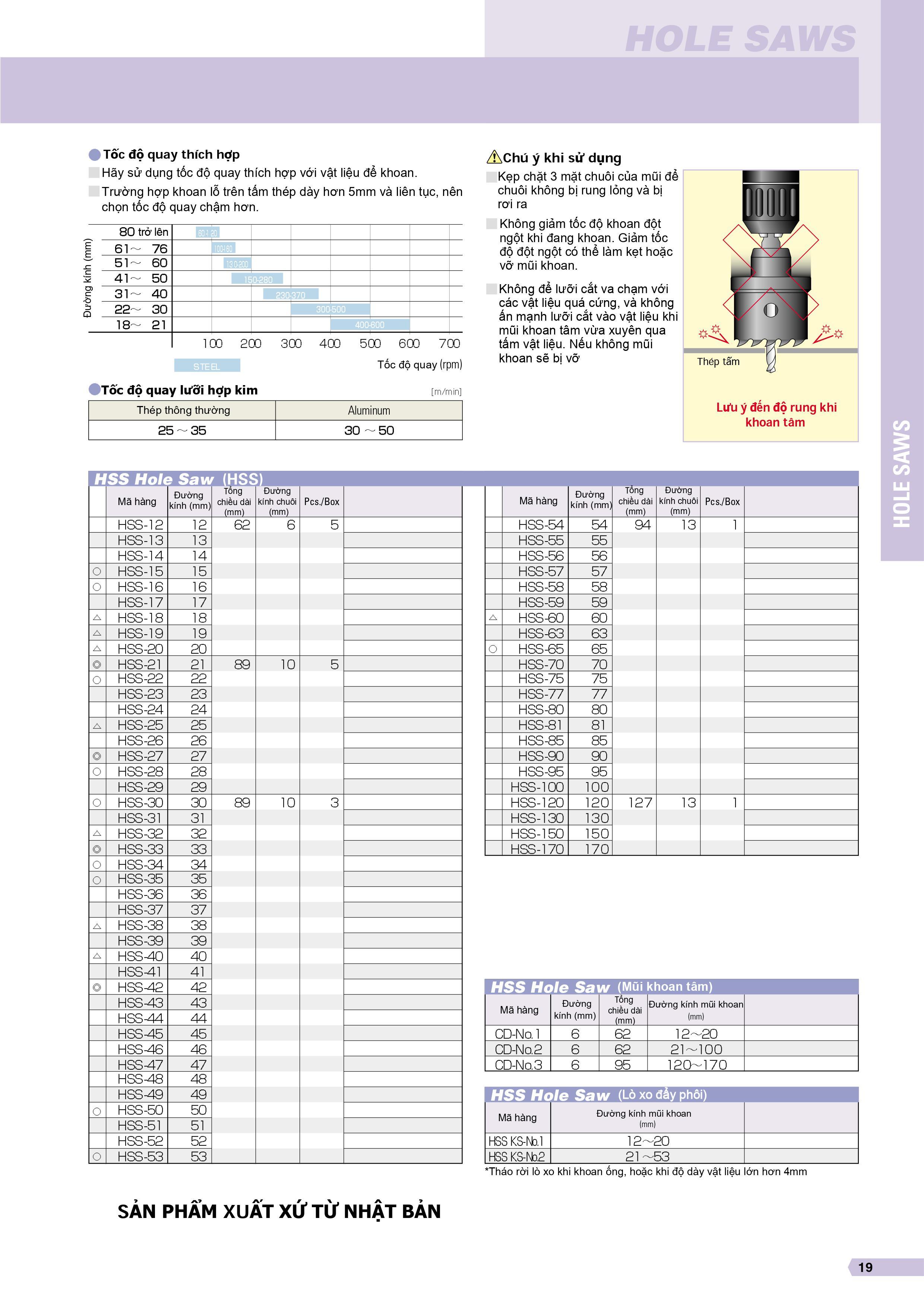 SỬ DỤNG: TẤM THÉP ( đến 3.2 mm), ALUMINUM ( đến 3.2 mm), GỖ, FRP, PLASTIC. Lò xo đẩy phôi (các size từ 53mm trở xuống có gắn lò xo đẩy phôi) Mũi khoét thép gió HS-S là gì?