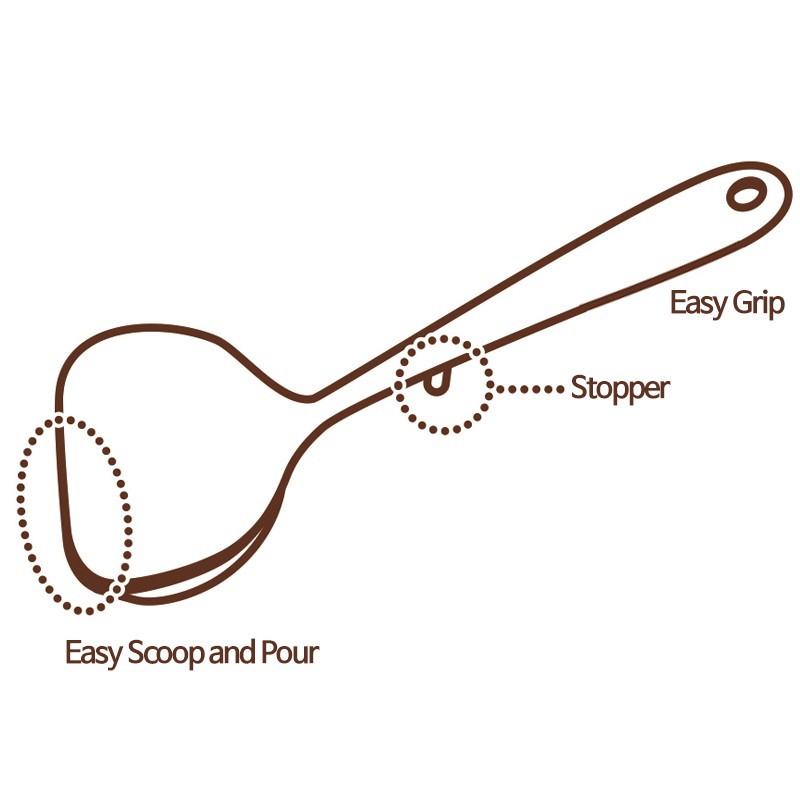 Công dụng:Chuyên dùng để múc canh, súp hay các loại đồ xào ướ không làm trầy xước các bề mặt của xoong chảo