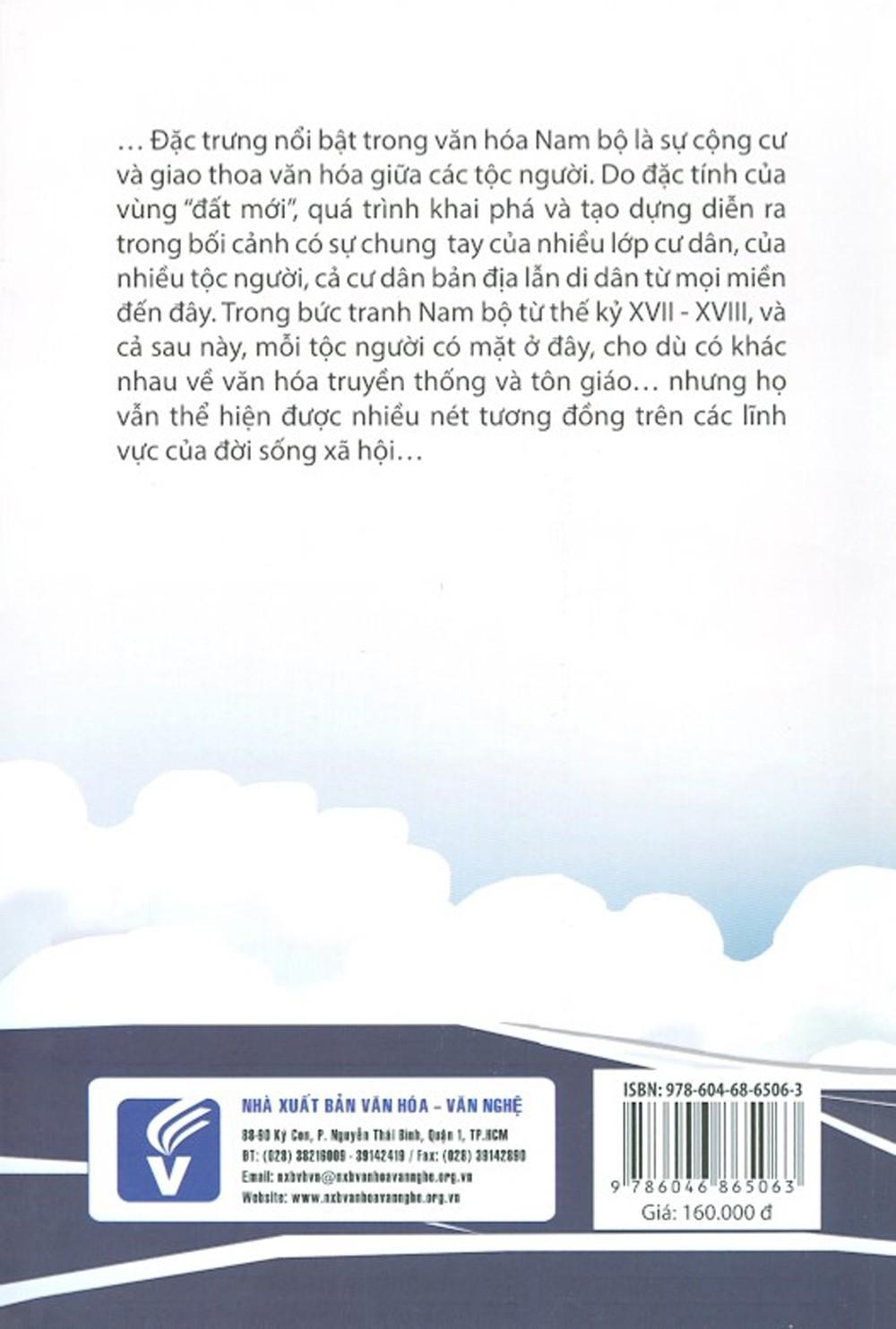--- Đặc trưng nổi bật trong văn hóa Nam bộ là sự cộng cư và giao thoa văn hóa giữa các tộc người. Do đặc tính của vùng “đất mới”, quá trình khai phá và tạo dựng diễn ra trong bối cảnh có sự chung tay của nhiều lớp cư dân, của nhiều tộc người, cà cư dân bản địa lẫn di dân từ mọi miền đến đây. Trong bức tranh Nam bộ từ thế kỷ XVII – XVIII, và cả sau này, mỗi tộc người có mặt ở đây, cho dù có khác nhau về văn hóa truyền thống và tôn giáo… nhưng họ vẫn thể hiện được nhiều nét tương đồng trên các lĩnh vực của đời sống xã hội…---