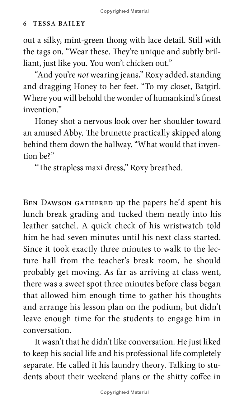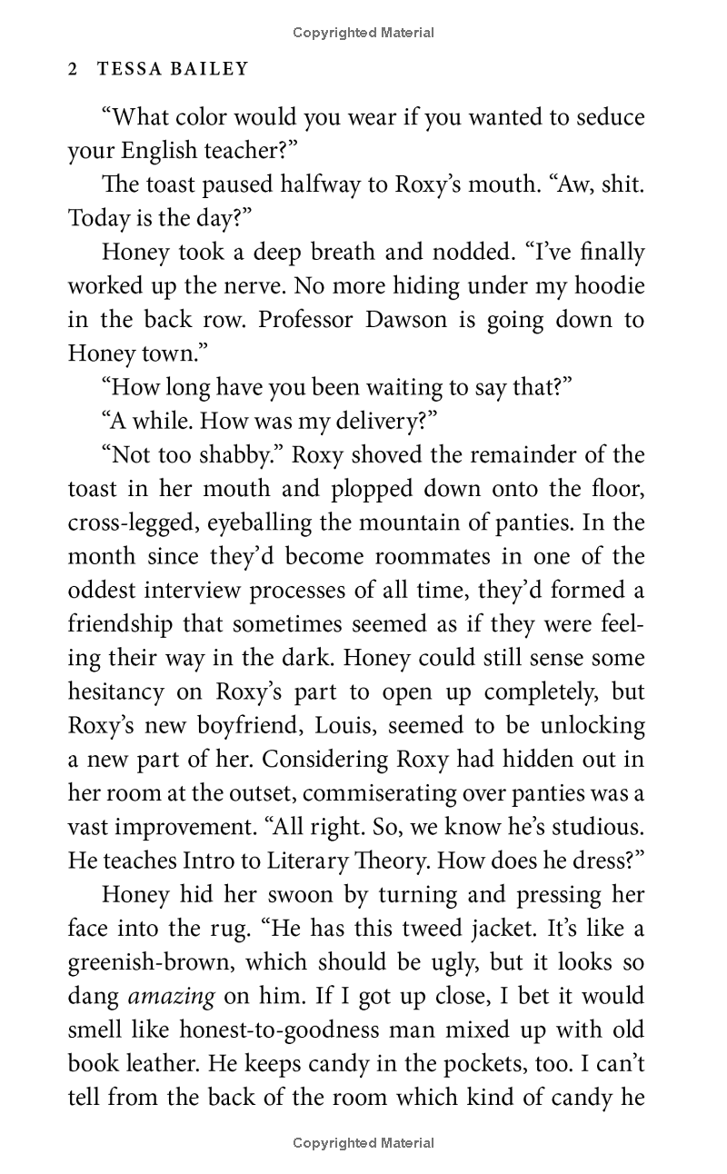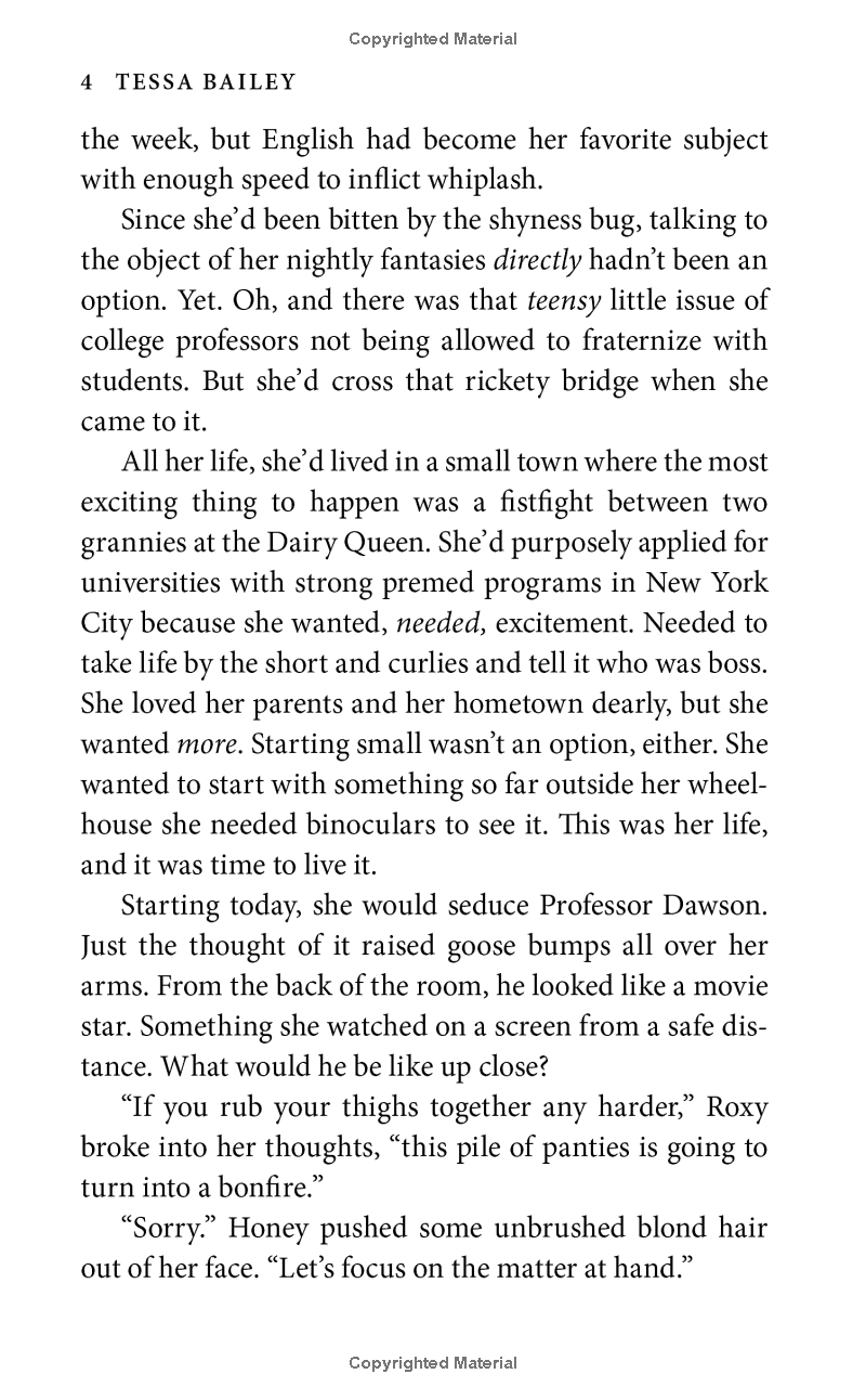 When Honey Perribow traded in her cowboy boots for stilettos and left her small Kentucky town to attend Columbia University, she never expected to find a dirt-cheap apartment or two new best friends. No stranger to hard work, Honey’s sole focus is a medical until she sees newly-minted Professor, Ben Dawson, and her concentration is hijacked. Honey is fascinated by her gorgeous, young English professor and vows to find a crack his tweed-wearing, glasses-clad exterior.