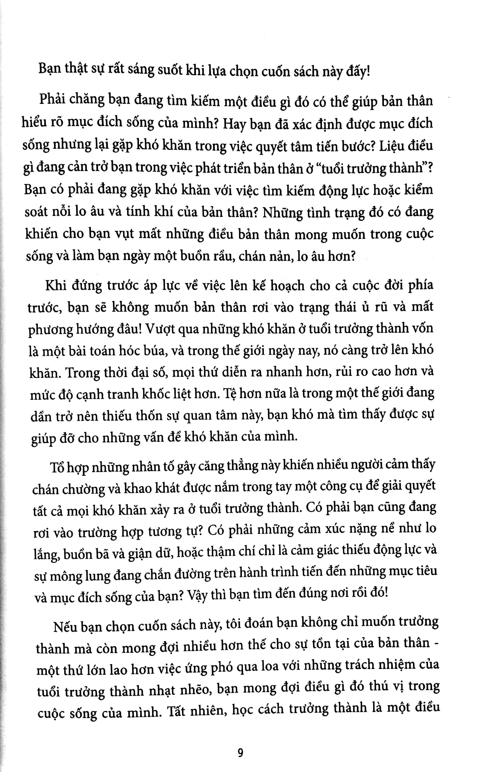 Nghệ Thuật Cân Bằng Cảm Xúc Cho Người Trưởng Thành Phải chăng trưởng thành là khi chúng ta làm chủ được cảm xúc của mình? Xã hội ngày nay thật kỳ lạ khi có quá nhiều những người lớn “trẻ con”. Giai đoạn tuổi trưởng thành đang trở nên phức tạp hơn khiến tất cả chúng ta phải tìm kiếm một sự giúp đỡ. Trong thời đại số, mọi thứ diễn ra nhanh hơn, rủi ro cao hơn và mức độ cạnh tranh khốc liệt hơn. Tệ hơn nữa là trong một thế giới đang dần trở nên thiếu thốn sự quan tâm này, bạn khó mà tìm thấy được sự giúp đỡ cho những vấn đề nan giải của mình. Mood To Read trân trọng giới thiệu tới bạn đọc “Nghệ thuật cân bằng cảm xúc dành cho người trưởng thành” - một cuốn sách dành cho bất kỳ ai đang quan tâm đến việc thấu hiểu bản thân và mong muốn phát triển tâm lý hoàn thiện. Với những bằng chứng và lời giải thích khoa học, Tiến sĩ tâm lý Lara E. Fielding mang đến giải pháp cứu cánh thiết thực cho người đang phải tự đối mặt với những trở ngại này. Cuốn sách chắc chắn sẽ trở thành bạn đồng hành đáng tin cậy bởi tính ứng dụng cao và dễ sử dụng bởi sự kết hợp hài hòa của phương pháp chánh niệm và những chiến lược kiểm soát cảm xúc. Đó sẽ là chìa khóa giúp bạn trưởng thành đầy nghị lực và biết tự định hướng bản thân. “Chúng ta chủ động kiến tạo con đường mà mình mong muốn, để bạn không chỉ đơn giản là tồn tại, thoái thác và luồn lách tránh né những thách thức của cuộc sống.” “Bạn đã sẵn sàng và quyết tâm bắt đầu chuyến phiêu lưu khám phá bản thân và giải mã bí ẩn vĩ đại của chính mình chưa?