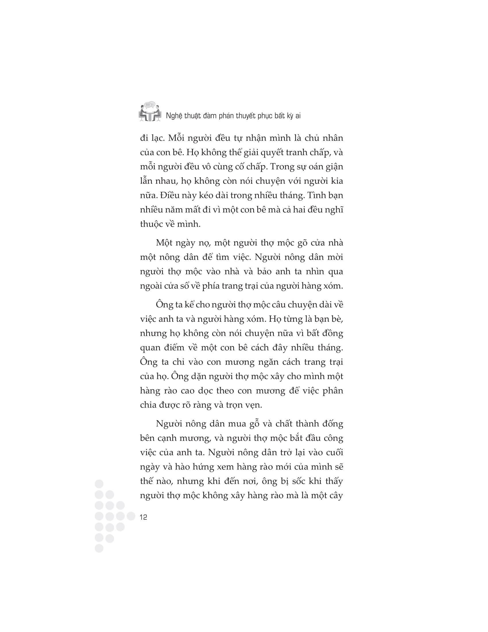 Bằng cách thành thạo đàm phán, thành công có thể dễ dàng đến gần. Lời khuyên hữu ích và hướng dẫn thực tế được đưa ra trong cuốn sách “Nghệ thuật đàm phán thuyết phục bất kì ai” cung cấp cho bạn lộ trình của mọi loại hình đàm phán. Thông qua các nghiên cứu tình huống, minh họa, bài tập và câu chuyện cá nhân, tác giả Lowry chỉ ra cách: