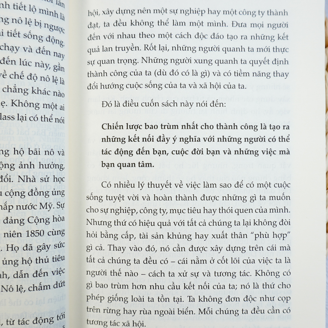 Đó là điều cuốn sách này nói đến: Chiến lược bao trùm nhất cho thành công là tạo ra những kết nối đầy ý nghĩa với những người có thể tác động đến bạn, cuộc đời bạn và những việc mà bạn quan tâm. Khi viết cuốn sách này, tác giả đã nhận ra rằng con đường ngắn nhất để giải quyết mọi vấn đề có thể chỉ là một lời mời, vì khi người ta chấp nhận, ta có thể tạo ra phép màu. Cái hay của một lời mời là nó có khả năng thay đổi tận gốc động lực. Khoảnh khắc khi ai đó đồng ý, họ đã cam kết và tuyên bố muốn tham gia.