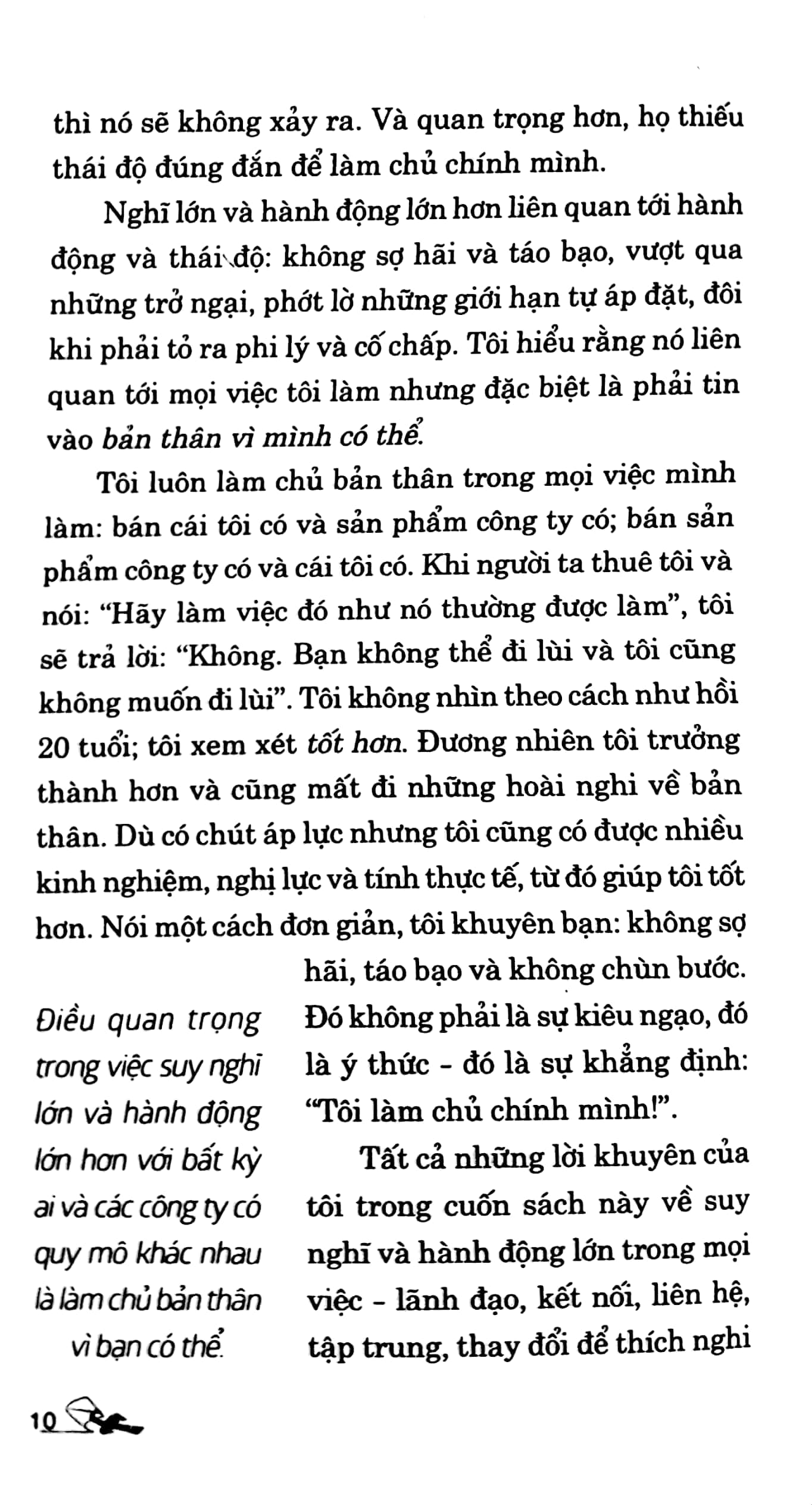 “Nếu những gì bạn đang làm sẽ giúp bạn gặt hái được nhiều hơn, bạn nên hành động tích cực hơn nữa. Sách Nghĩ lớn, hành động lớn hơn sẽ hướng dẫn bạn cách thực hiện các hành động cụ thể để tạo ra kết quả mong muốn. Tôi chân thành khuyên bạn đọc cuốn sách này!”