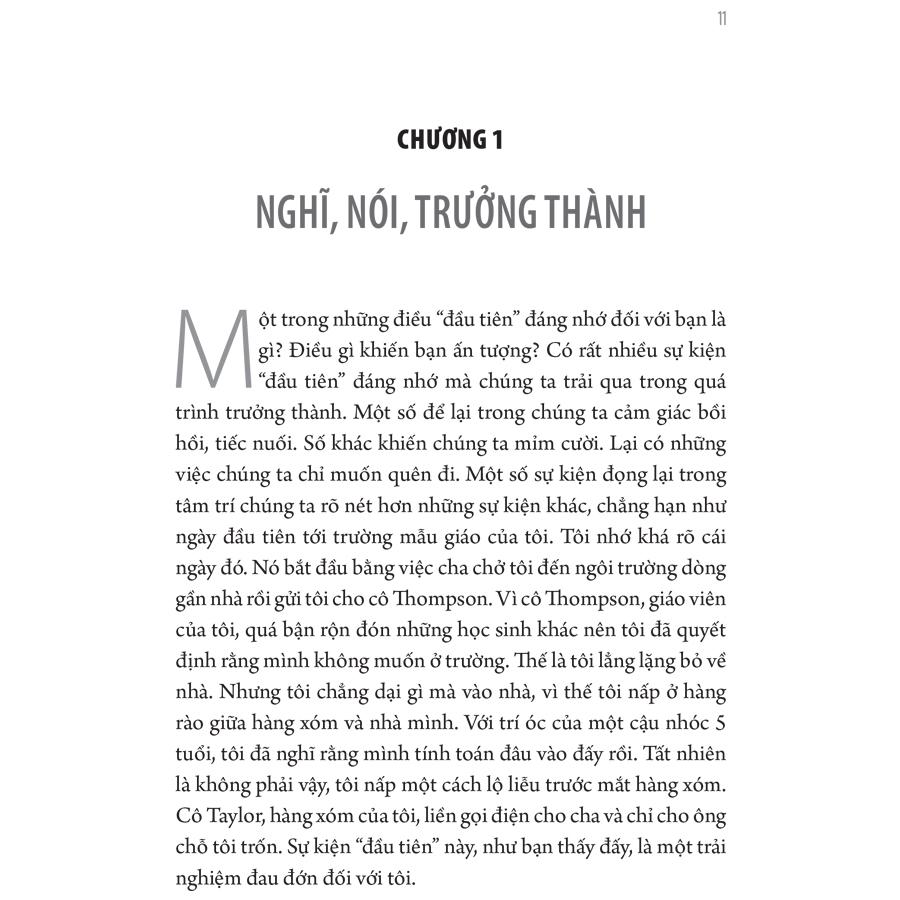 Cuốn sách “Nghĩ, nói, trưởng thành và làm nên sự nghiệp” là một gợi ý tươi mới và tích cực giúp bạn khai thác sức mạnh của những cuộc trò chuyện, đưa những cuộc trò chuyện vượt ra khỏi khuôn khổ “chém gió” thông thường và đi sâu vào cốt lõi của công việc, cuộc sống. Bạn hãy trở nên mạnh dạn hơn để bắt đầu những cuộc trò chuyện, đặt câu hỏi và bắt đầu khai mở hiểu biết của bản thân.