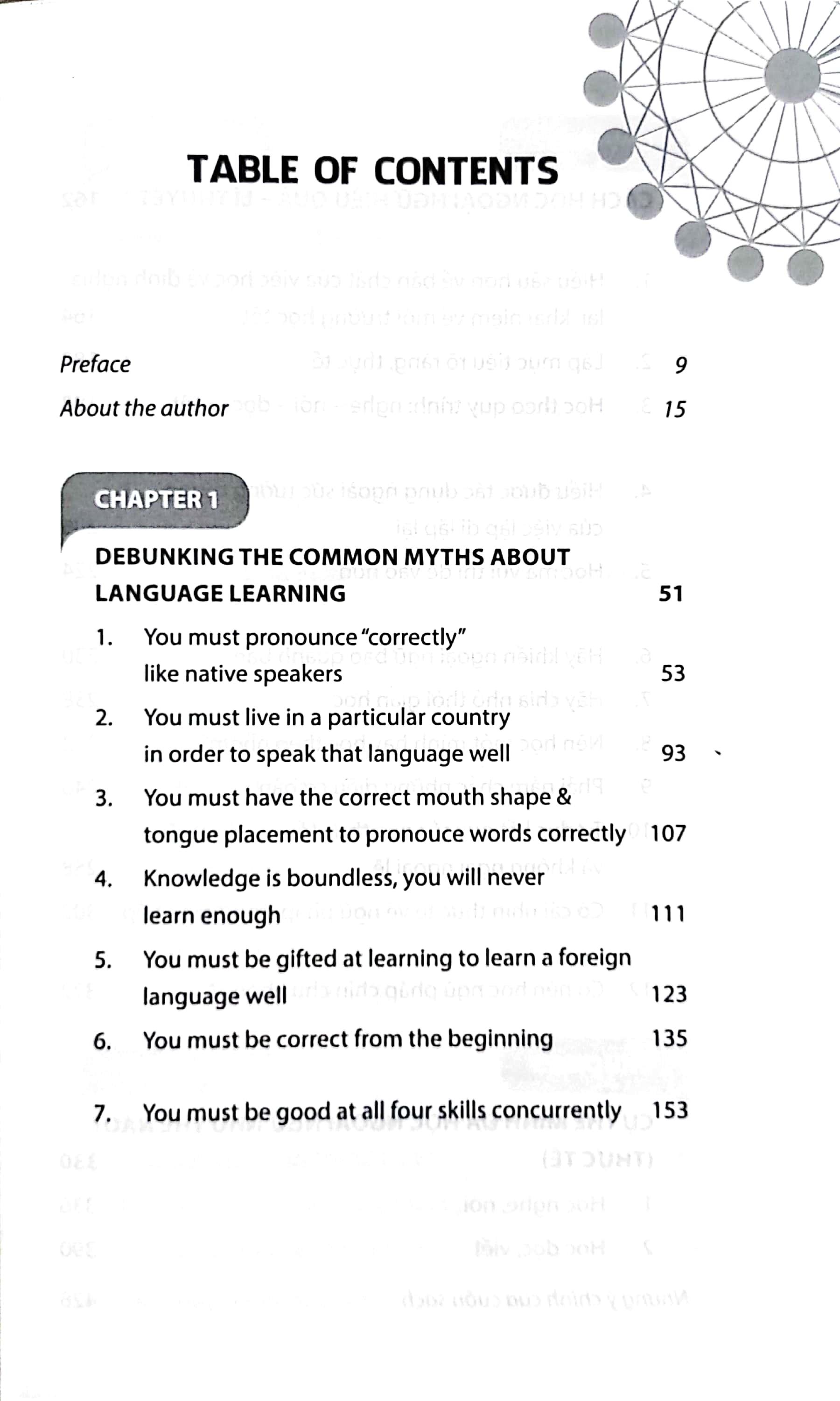 Đây không phải là một cuốn sách dài, nên có thể bạn sẽ đọc hết trong một hai ngày. Nó cũng không dạy bạn ngữ pháp, hay từ vựng gì cả, vì ngoài kia đã có vô vàn cuốn sách viết chuyên sâu về những chủ đề đó. Ngoại ngữ là đại dương vô biên, đi không bao giờ hết, không có hải đăng chỉ đường, bạn sẽ bị lạc lõng, nản lòng, và bỏ cuộc. Trong đại dương bao la ấy, đại đa số những thứ mà bạn nhìn thấy đều không quan trọng, 10% trong số chúng sẽ đem lại cho bạn 90% thành quả thực tế trong cuộc sống. Cuốn sách này sẽ phần nào giúp bạn định hướng để tìm ra 10% ấy cho m.ình.