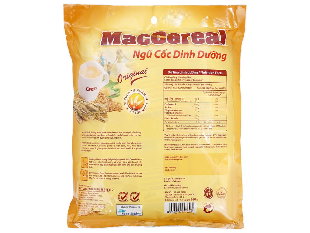 Ngũ cốc dinh dưỡng MacCereal bịch 560g (20 gói x 28g) thơm ngon dễ uống tiện lợi cho buổi sángNgũ cốc dinh dưỡng MacCereal bịch 560g (20 gói x 28g) thơm ngon dễ uống tiện lợi cho buổi sángNgũ cốc dinh dưỡng MacCereal bịch 560g (20 gói x 28g) thơm ngon dễ uống tiện lợi cho buổi sángNgũ cốc dinh dưỡng MacCereal bịch 560g (20 gói x 28g) thơm ngon dễ uống tiện lợi cho buổi sáng