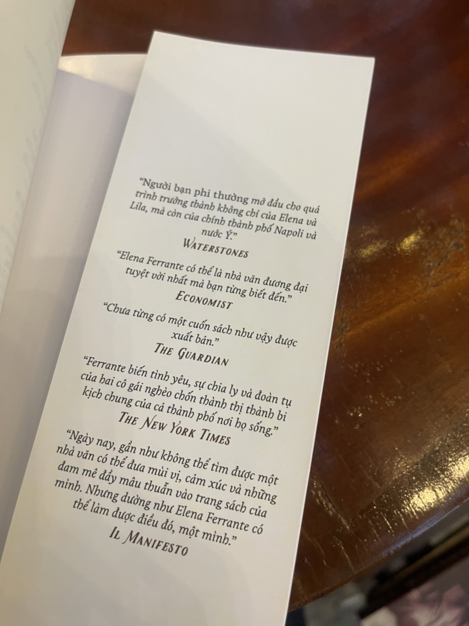 Dẫu cái tên của bà được vô vàn người biết đến, thân phận của Elena Ferrante vẫn hoàn toàn là bí ẩn. Bà là tác giả của cuốn tiểu thuyết được dịch sang 40 thứ tiếng, bán được 15 triệu bản trên toàn thế giới, trong đó có 4 triệu bản ở Pháp, và tất cả những thành công ấy có được mà không cần một bài phỏng vấn truyền hình, không một buổi ra mắt sách hay ký tặng, quả là một điều không tưở