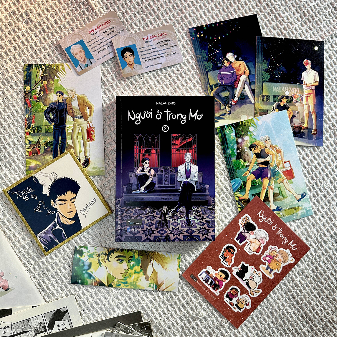 - Bản đặc biệt: 01 bookmark (Quà kẹp trong sách) 01 sticker phủ nhũ (Quà kẹp trong sách) 02 thẻ nhân vật (Quà rời) 04 postcard giấy ánh nhũ (Quà rời) 01 shikishi có chữ ký tác giả (Quà rời) Người ở trong mơ 2 - Bí ẩn nối tiếp bí ẩn Võ Thi Quân là một kẻ bất cần chẳng biết mình muốn gì với đời. Vào một ngày nọ, trên đường về nhà từ buổi tụ tập với bạn bè, cậu bất ngờ bị tai nạn và tỉnh lại trong bệnh viện. Tại đây, Quân gặp gỡ một “hồn ma” với nụ cười thân thiện tên là Đại Dương, có khả năng điều khiển giấc mơ của người khác. Anh chỉ nhớ được những ký ức mơ hồ về gia đình nên muốn nhờ Quân giúp tìm đường về nhà. Dù nghi ngại và ngờ vực nhưng Quân vẫn không tránh khỏi niềm thương xót mà đưa tay giúp đỡ Đại Dương. Lần theo những manh mối ít ỏi thu thập được từ bệnh viện, cậu biết được nhiều hơn về con người của anh ta lúc còn sống. Mọi người đều bảo Đại Dương rất tốt bụng, số phận của anh quá đỗi tang thương. Nhưng liệu mọi chuyện có thật sự đơn giản như vậy? Cậu phát hiện ra, đằng sau vẻ tươi cười thân thiện của Đại Dương dường như có một nhân cách khác đầy tuyệt vọng và thù hận… Liệu Quân có thể giúp Đại Dương tìm lại được kí ức? Cái c.h.ế.t của Đại Dương liệu có uẩn khúc gì không? Mời các bạn đón đọc tập thứ 2 của bộ truyện tranh vừa hài hước vừa bí ẩn “Người ở trong mơ”!