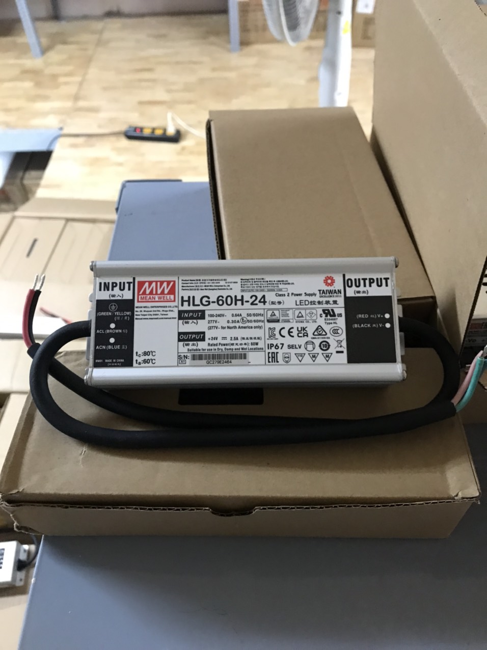 ✨Nguồn LED Driver HLG-60H-24 Meanwell (60W 24V 2.5A), Hàng chính hãng