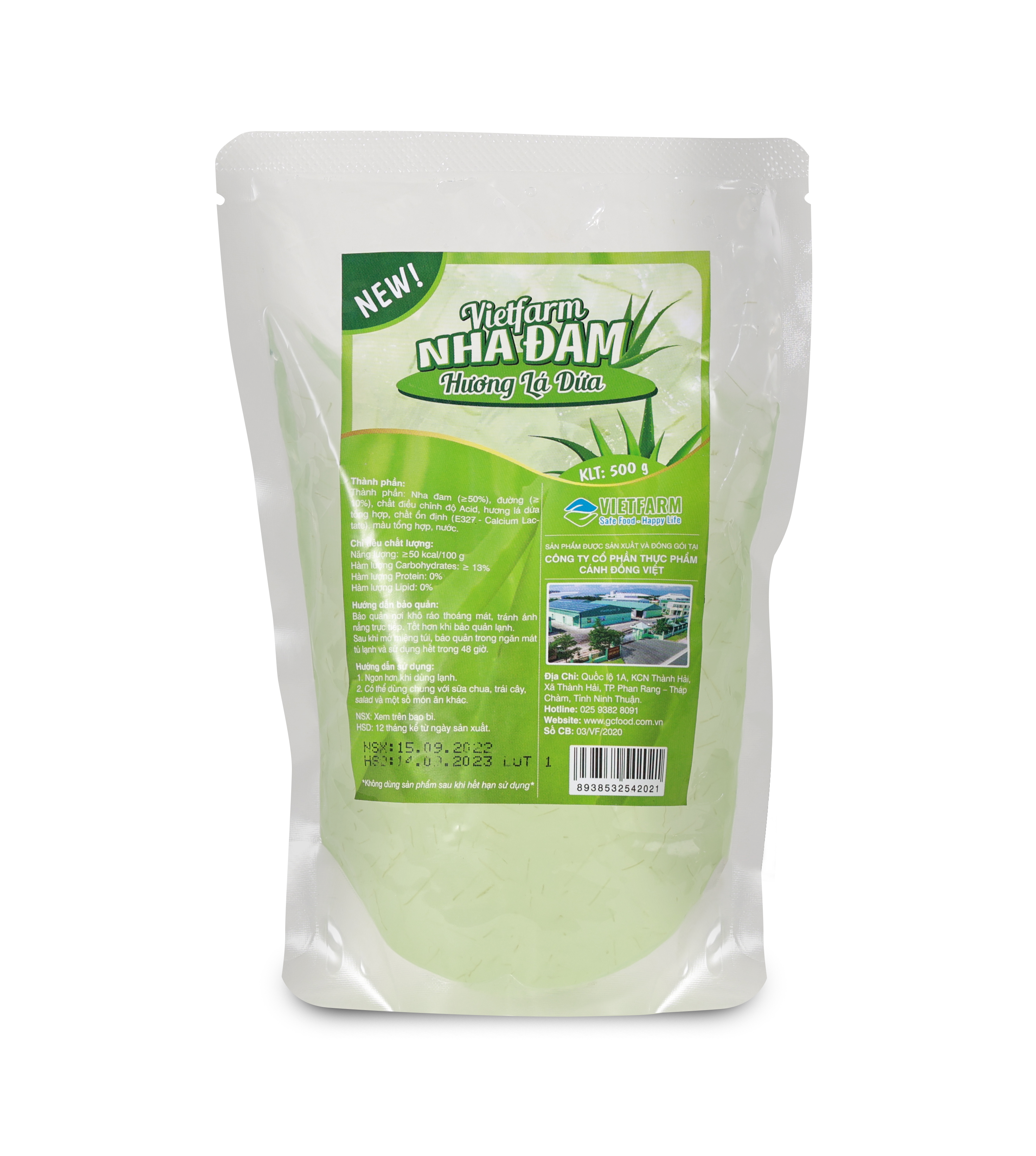 Mua tại TiktokThạch nha đam Vietfarm được sản xuất bởi Công ty CP Thực phẩm Cánh Đồng Việt, Cty sản xuất nha đam lớn nhất Việt Nam hiện nay. Quy trình sản xuất khép kín, đảm bảo chất lượng sản phẩm. Thạch dạng hạt, vừa uống vừa nhai, dai dai vui miệng Nha đam Vietfarm với thiết kế túi đứng tiện dụng, không chất bảo quản, nhiều hương vị để lựa chọn. CÔNG DỤNG Lợi ích của nha đam (lô hội) đã được các nhà nghiên cứu và bác sĩ công nhận đối với tình trạng sức khỏe người dùng: