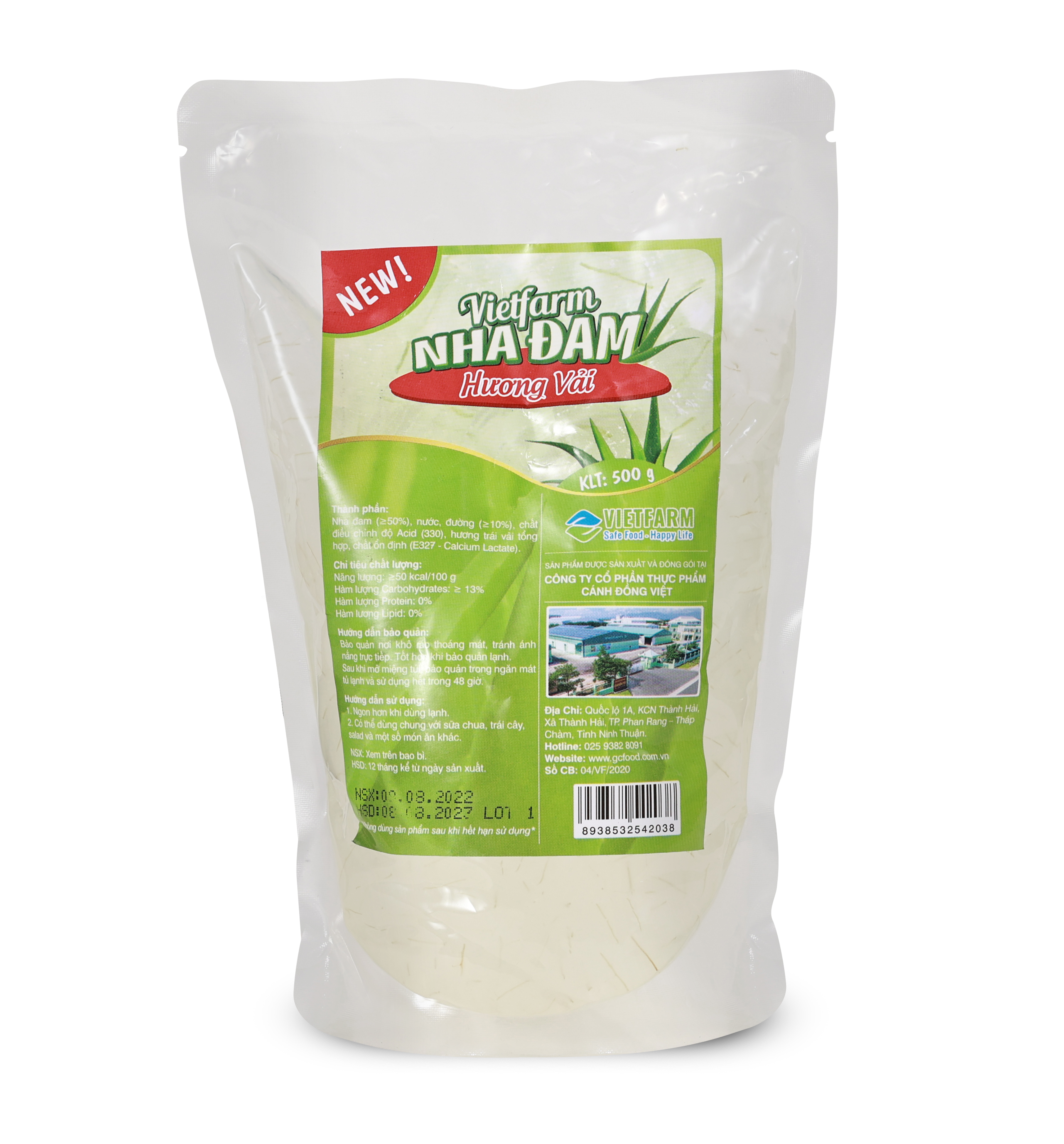 Thạch nha đam Vietfarm được sản xuất bởi Công ty CP Thực phẩm Cánh Đồng Việt, Cty sản xuất nha đam lớn nhất Việt Nam hiện nay. Quy trình sản xuất khép kín, đảm bảo