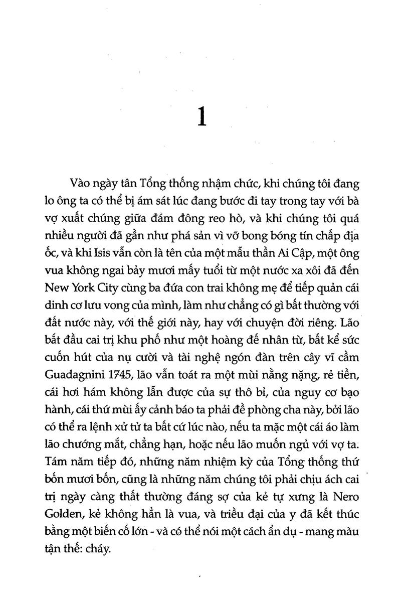 Cuộc tái hồi chủ nghĩa hiện thực đầy ngạo nghễ của Salman Rushdie được đánh dấu bằng “Nhà Golden” - một áng dụ ngôn bi tráng về nước Mỹ hiện đại. Lấy hai đầu mốc thời gian là thời điểm bắt đầu và kết thúc tám năm triều đại Obama, Nhà Golden xoay quanh số phận của bốn cha con từ vùng đất không được gọi tên đột ngột xuất hiện giữa trời New York một ngày định mệnh. Họ rũ bỏ quá khứ như rắn lột da, họ làm một phép biến hình như trong sử thi Ovid, và họ đâu ngờ chính họ là những kiến trúc sư cho cuộc sụp đổ của chính m.ình. Bằng thứ tiếng Anh khẩn trương và nóng rẫy như bầu không khí Ấn Độ quê hương, Rushdie đã đanh thép vạch mặt thiên đường tự do Mỹ trong cuộc khủng hoảng căn tính dai dẳng, trên nền bối cảnh náo động an ninh và tao loạn chính trị…