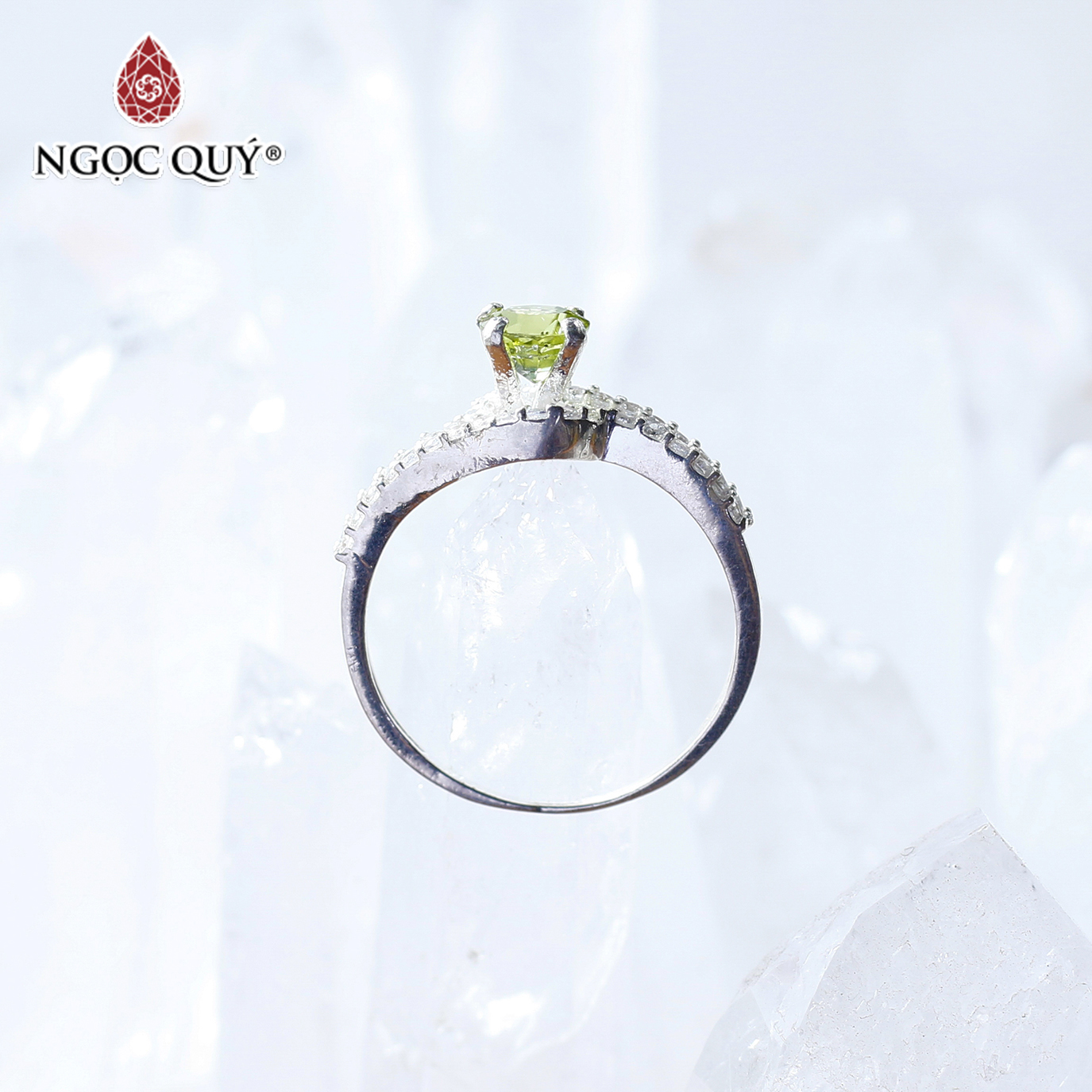 NHẪN BẠC NỮ ĐÁ PERIDOT : Đá Peridot thực chất được hình thành từ đá magma trong tinh thể núi lửa , đá được tìm thấy ở hệ tinh thể trực thoi, hiếm khi ở