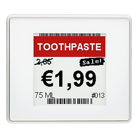 Mua tại TiktokGiải pháp nhãn giá điện tử của chúng tôi cho phép các cửa hàng, siêu thị thay đổi giá sản phẩm theo thời gian thực và thực hiện các chiến dịch khuyến mãi tại bất kì thời gian hoặc địa điểm theo mong muốn. EE-153R giúp loại bỏ phương pháp dán nhãn truyền thống, tiết kiệm nhân công và các chi phí phát sinh khác khi thay đổi giá cả và thông tin của sản phẩm. MÔ TẢ SẢN PHẨM Nhãn giá điện tử EE-153R có kích thước nhỏ 1.5” , màn hình hiển thị với các màu đen / trắng / đỏ. Nhãn điện tử ( ESL ) EE-153R đặc biệt phù hợp cho các của hàng bán lẻ, siêu thị, chuỗi nhà thuốc… Nhờ độ tương phản cao của màn hình hiển thị, mã vạch trên màn hình EE-153R có thể đọc được bằng cách sử dụng máy quét mã vạch thông thường. Vì màn hình chỉ tiêu thụ năng lượng trong quá trình truyền sóng vô tuyến và cập nhật màn hình, Opticon có thể đảm bảo tuổi thọ pin lên đến 5 năm ở nhiệt độ phòng với 1 lần cập nhật mỗi ngày. Bằng cách sử dụng phần mềm Opticon ESL Server , việc cập nhật hoặc thay đổi nội dung trên EE-153R được thực hiện dễ dàng. Bạn có thể sử dụng thiết bị quét mã vạch của Opticon và quét mã vạch trên nhãn ESL, cập nhật thông tin trên thiết bị quét. Thông tin trên nhãn điện tử sẽ được cập nhật nhanh chóng theo thời gian thực. THÔNG SỐ KỸ THUẬT