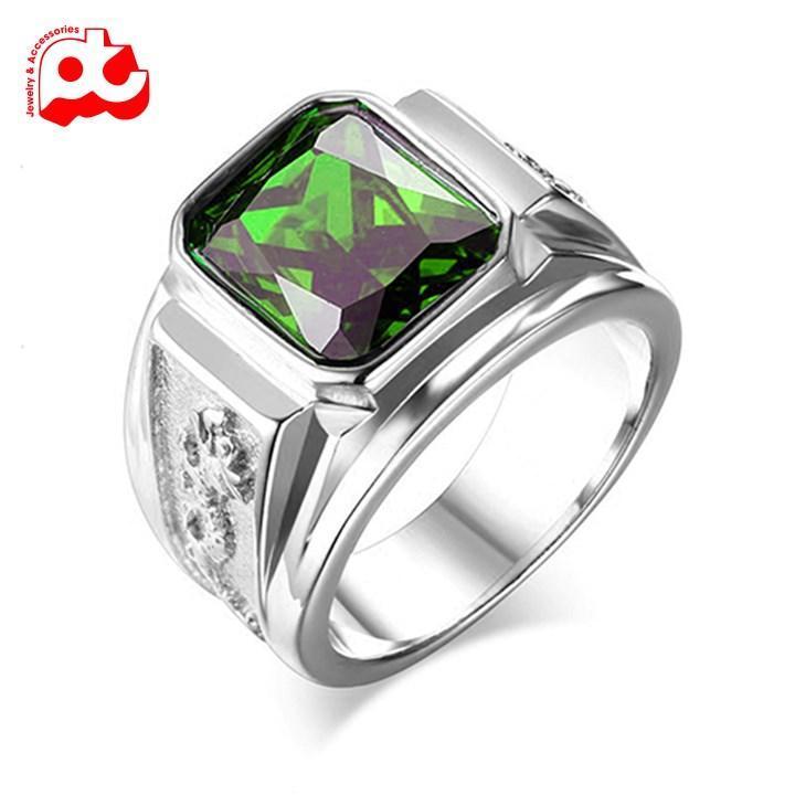 Nhẫn nam titan cao cấp thời trang chạm rồng 2 bên trangsucpt đá xanh lá inox thép không gỉ PTNNA253  Nhẫn đẹp titan thép không gỉ nam kiểu cham rồng trangsucpt đá xanh dương màu trắng PTNNA250