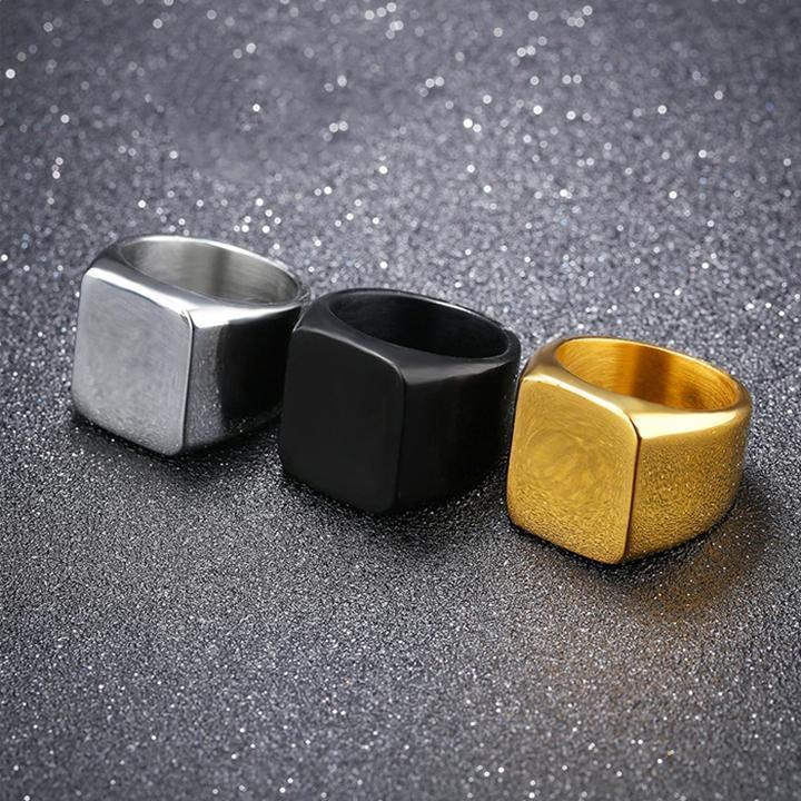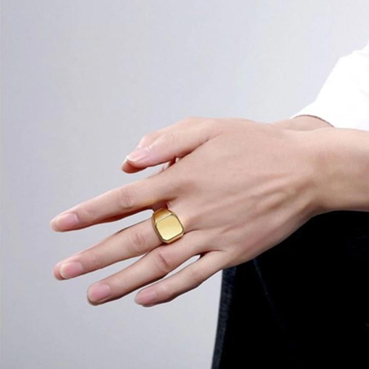 Nhẫn nam titan thời trang mặt trơn vuông to inox cao cấp thép không gỉ trangsucpt màu mạ vàng PTNNA24