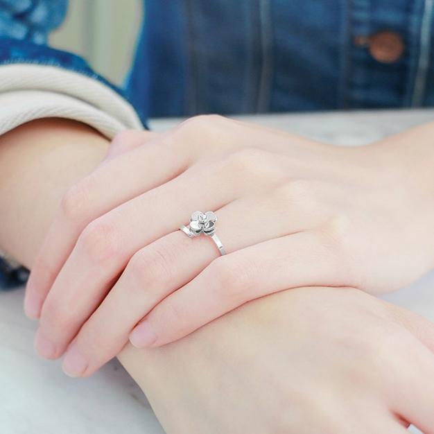 Nhẫn titan hoa trà free size màu trắng được thiết kế hình hoa trà với những cách hoa gia công vô cùng tinh xảo mang lại mẫu nhẫn cực kỳ xinh xắn giúp những ngón tay bạn trở nên quyến rũ hơn nhưng cũng không kém phần sang trọng.