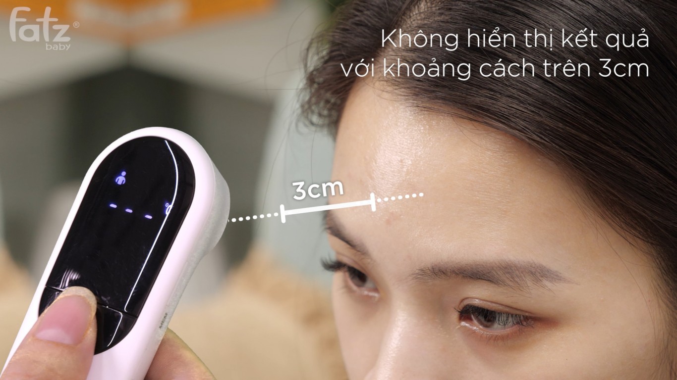 - Không cho kết quả đo thân nhiệt khi khoảng cách từ nhiệt kế đến trán quá 3cm. Việc này giúp người dùng tránh nhận được các kết quả đo không chính xác.