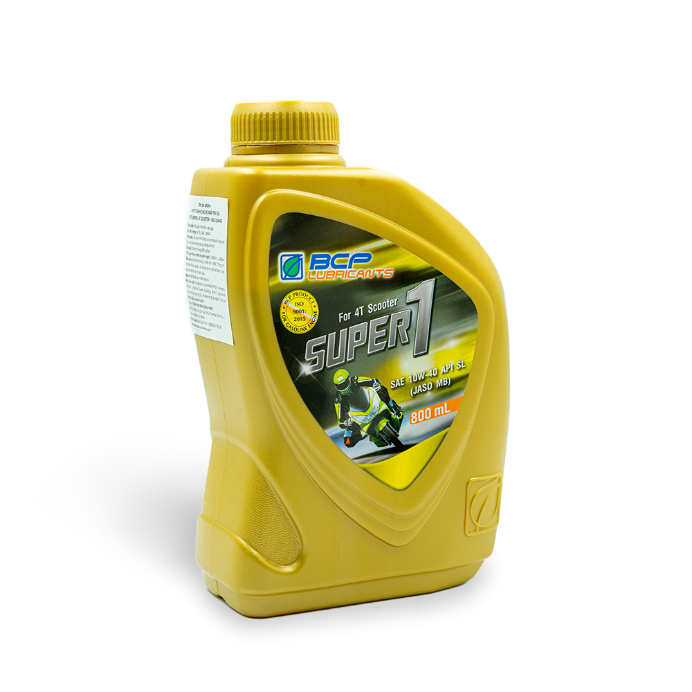 Nhớt xe số BCP Super 1 - SAE 15W40 - API SL - JASO MA2 – chai 800 mL BCP Super 1 4T Motorcycle là sản phẩm dầu nhớt đa cấp tổng hợp chuyên dùng