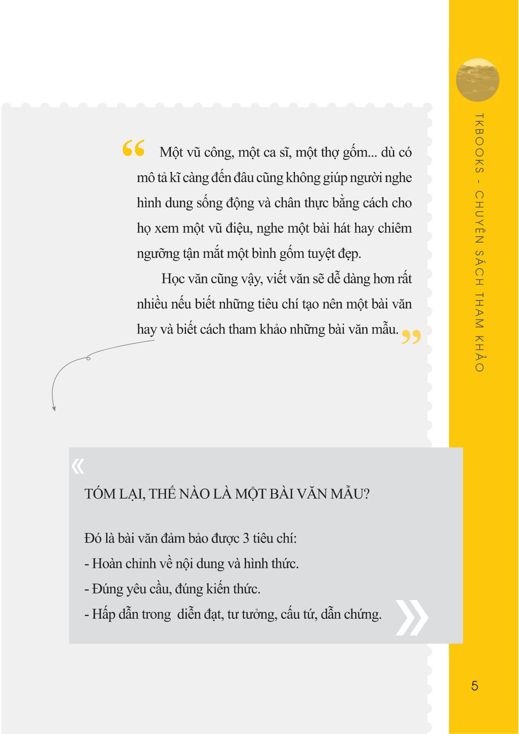 - Và có ai đã từng: Đau khổ với việc làm bài tập và bài kiểm tra? Chờ đợi may mắn và cảm hứng bất chợt? Chờ đợi thầy giỏi cô hay đến với mình? Vậy tại sao các em không tự học bằng nhiều cách, trong đó có cách tự học với những bài văn mẫu? Với mong muốn giúp đỡ cho các em học sinh lớp 8 có được tài liệu tham khảo bám sát với các bài học trên lớp và mở rộng thêm nhiều kiến thức, chúng tôi xin giới thiệu tới các em cuốn sách “Những bài văn mẫu lớp 8”. Cuốn sách văn mẫu này sẽ cung cấp cho các em học sinh lớp 8 những gì? Hướng dẫn tự học với văn mẫu đúng cách, hiệu quả Văn mẫu không phải là một cái phao cứu trợ, không phải là thứ để các em sao chép. Văn mẫu là một công cụ hữu ích cho quá trình tự học nếu các em biết dùng đúng cách. Cuốn sách này sẽ cung cấp phương pháp cụ thể cho từng kiểu bài, giúp các em có thể vận dụng linh hoạt, giải quyết tốt các đề văn khác nhau mà không lúng túng, bỡ ngỡ. Từ phương pháp các em dễ dàng hình thành cách tư duy để giải quyết một vấn đề cụ thể. Rèn kĩ năng viết các kiểu đoạn văn, bài văn tự sự, thuyết minh và nghị luận văn học “Những bài văn mẫu lớp 8” giới thiệu những đoạn, bài văn hay, hoàn chỉnh để các em tham khảo, mở rộng và làm giàu vốn từ, nâng cao khả năng diễn đạt. Từ các bài văn mẫu các em sẽ biết được để có một bài văn hay mình cần thực hiện những bước nào. Qua đó hình thành, phát triển tư duy logic, khả năng ngôn ngữ, lập luận, phản biện vấn đề. Nhờ vậy những kiểu bài tự sự hay thuyết minh, nghị luận văn học sẽ trở nên thật đơn giản với các em. Là cuốn sách đầu tiên hướng dẫn sử dụng văn mẫu có hiệu quả, chia sẻ những tiêu chí để làm được bài văn đúng và hay. Các đề văn thường kèm theo các hình ảnh minh họa thực tế giúp các em dễ dàng liên tưởng, tưởng tượng và sáng tạo câu từ. Phụ huynh và học sinh hãy nhanh tay đặt mua ngay cuốn sách bổ ích này để việc học văn của các em trở nên thú vị hơn nhé!