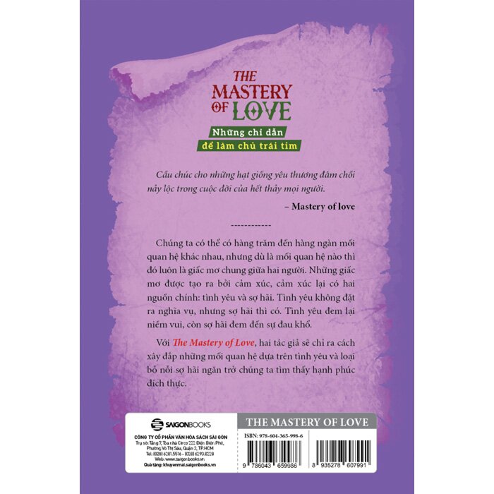 Với - The Mastery of Love, hai tác giả sẽ chỉ ra cách xây đắp những mối quan hệ dựa trên tình yêu và loại bỏ nỗi sợ hãi ngăn trở chúng ta tìm thấy hạnh phúc dich thuc.