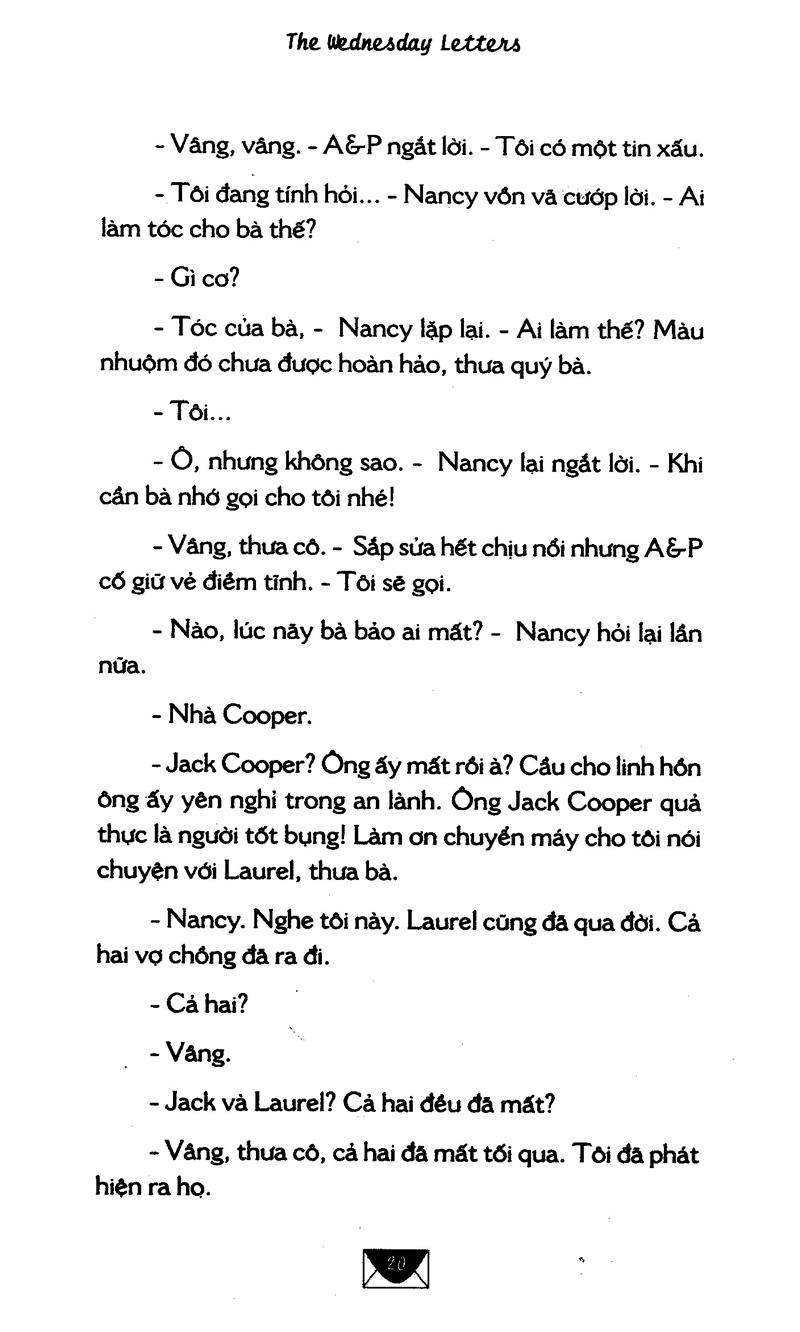 Hôm nay lúc ở nhà thờ anh đã lập một lời hứa thiêng liêng và tối nay anh sẽ lập thêm một lời hứa khác. Anh sẽ viết thư cho em mỗi tuần. Cho dù chúng ta ở cách xa nhau hàng ngàn cây số hay cùng ở trong một gian phòng thì anh vẫn sẽ đều đặn viết thư cho em. Anh đã định viết nhật ký đấy nhưng rồi anh sợ mình không duy trì được. Mà ai thèm quan tâm đến nhật ký của anh chứ? Nhưng nếu là thư thì sẽ có người quan tâm, và chúng sẽ tồn tại lâu dài..."