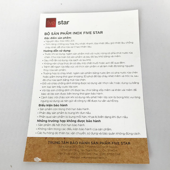 Mua tại TiktokThương hiệu: Fivestar - Tân Hợp Thành Xuất xứ: Công Ty TNHH Tân Hợp Thành Việt Nam Nguyên liệu: inox 430 Kích thước: