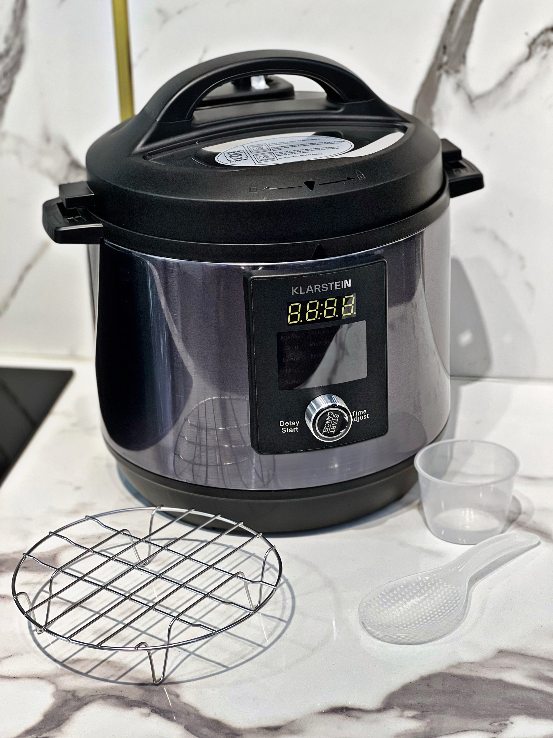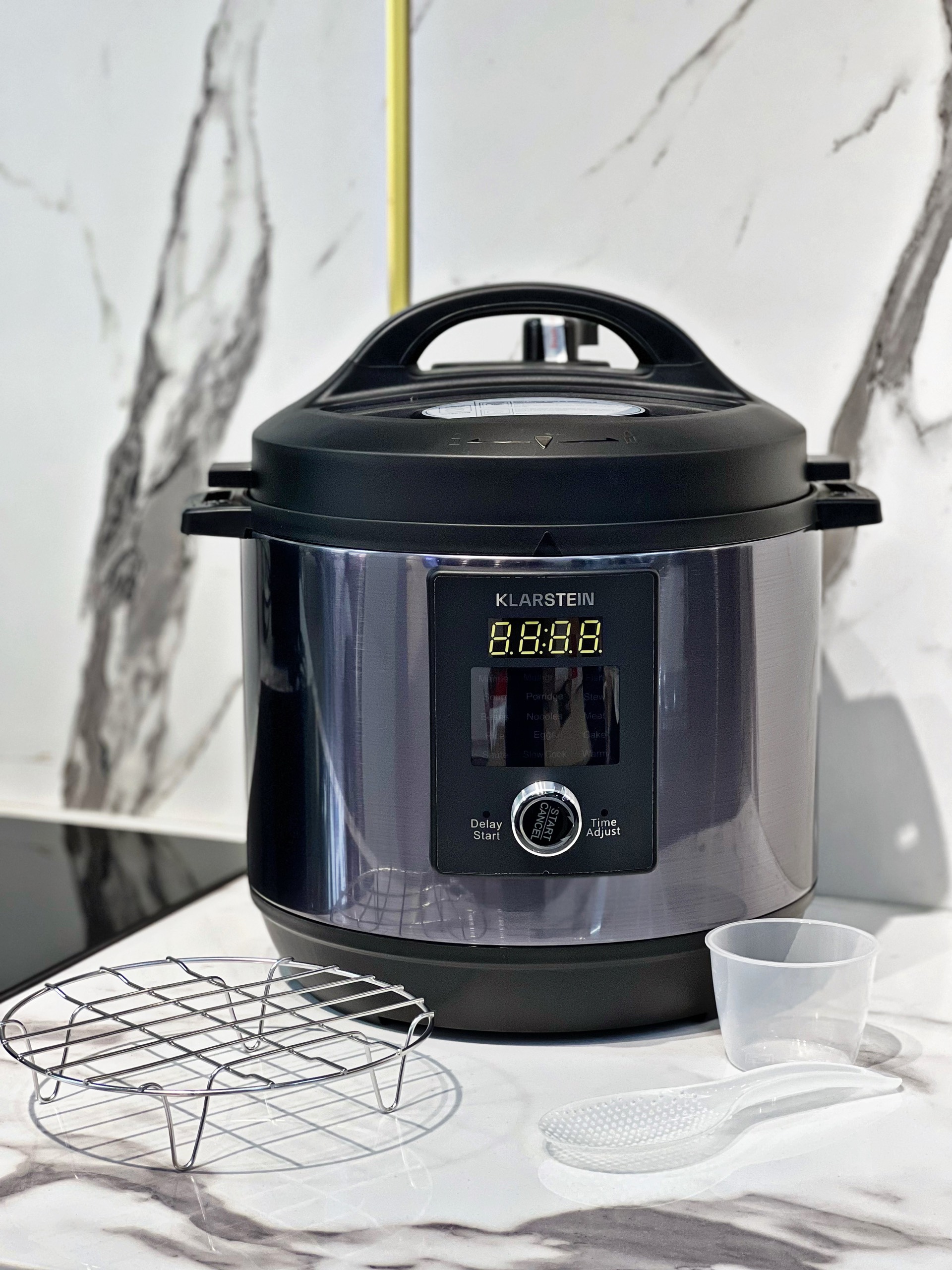 Đặc điểm nổi bật của Nồi áp suất điện đa năng Klarstein 4.8 lít Nhiều chức năng nấu: nấu nhanh, áp chảo và nấu chậm trong một. Bếp từ đa chức năng Quick Cook của Klarstein