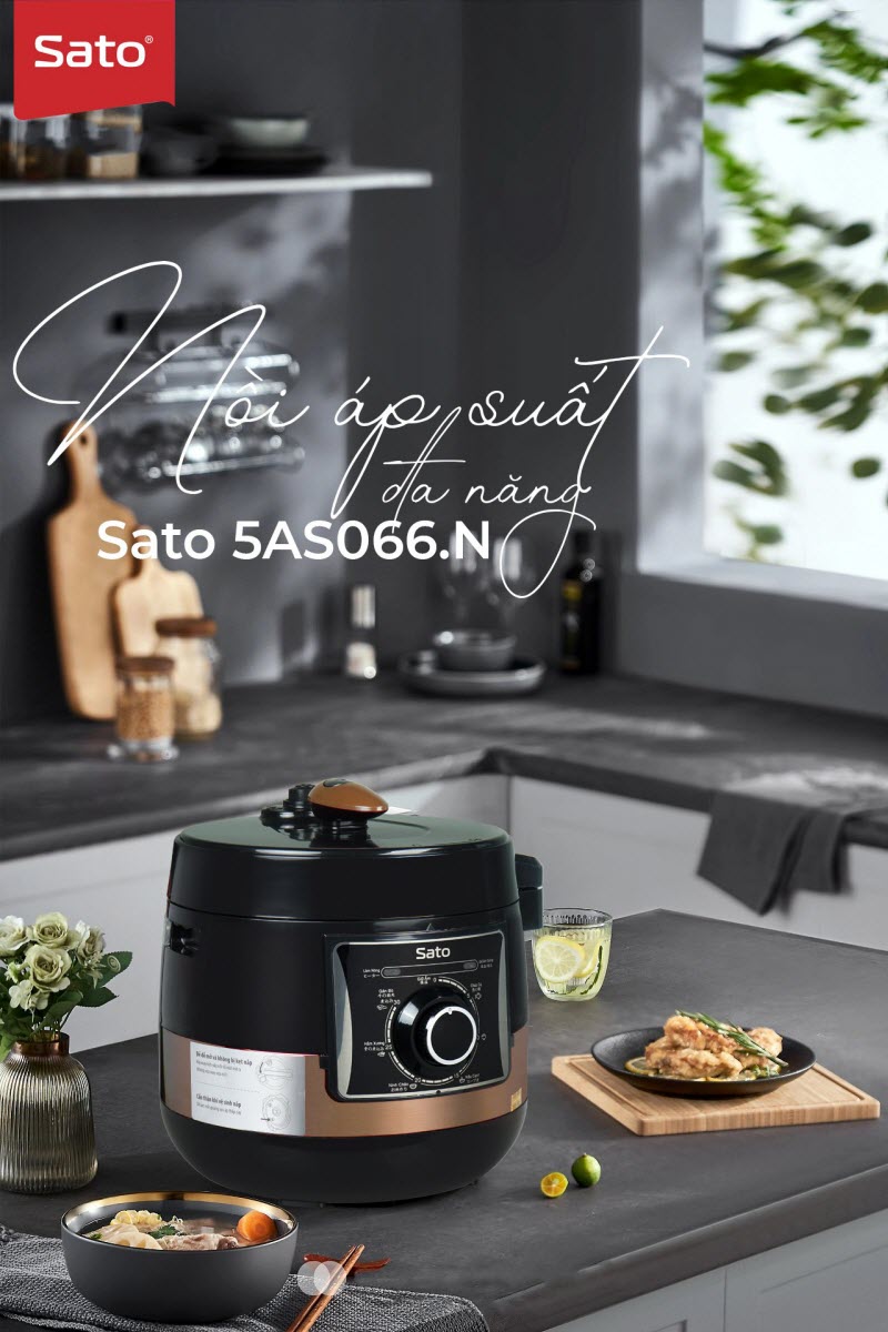 ✨Nồi áp suất đa năng SATO 5AS066.N 5.0L - Nồi áp suất đa chức năng : nấu cơm, nấu cháo, hầm gân, ninh, súp, hấp, giữ ấm ...- Miễn phí vận chuyển toàn quốc - Hàng chính hãng