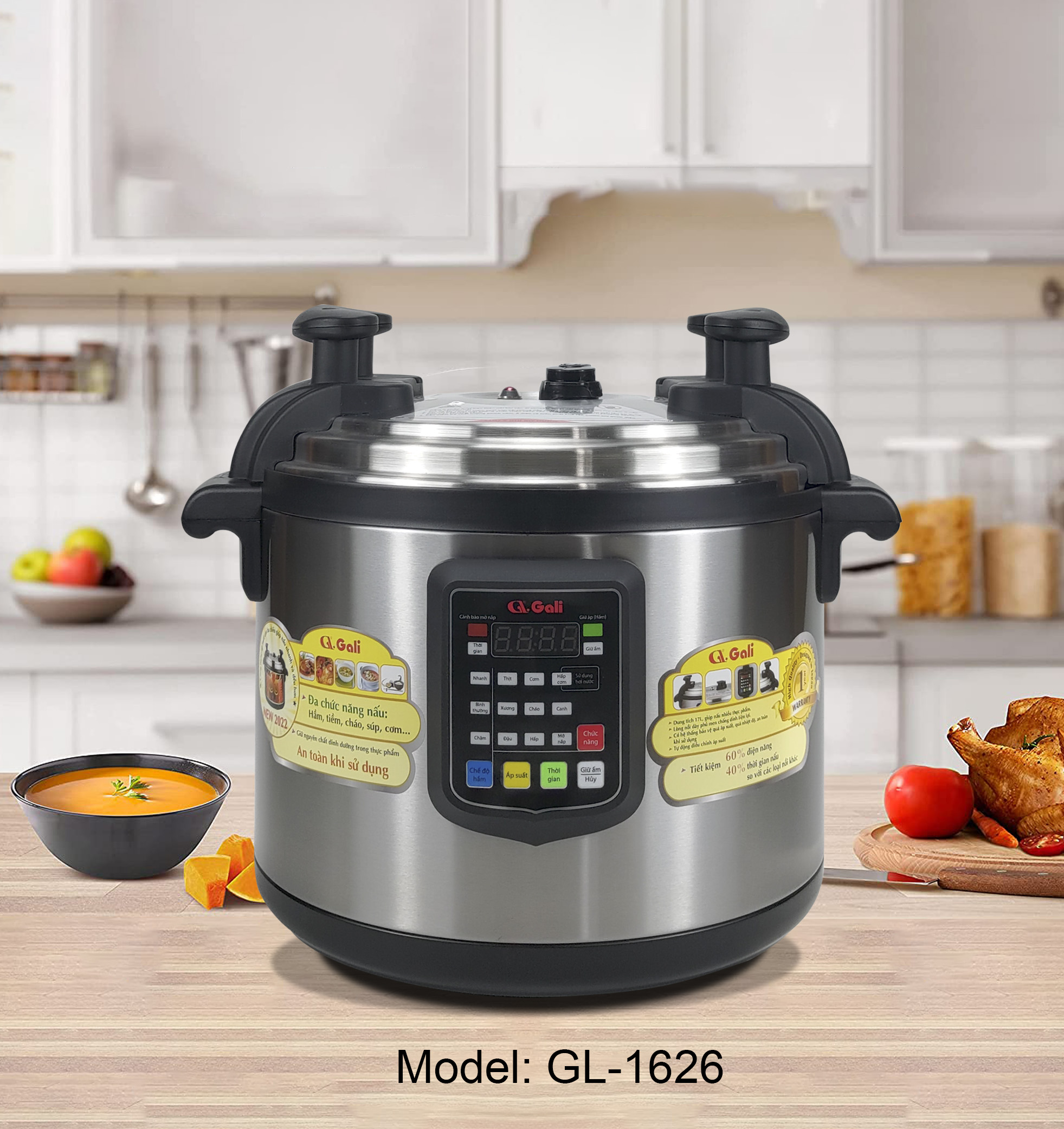 - Nồi áp suất điện Gali dung tích 17 lít công suất 1800w, hẹn giờ và hầm theo nhu cầu bảo hành 12 tháng