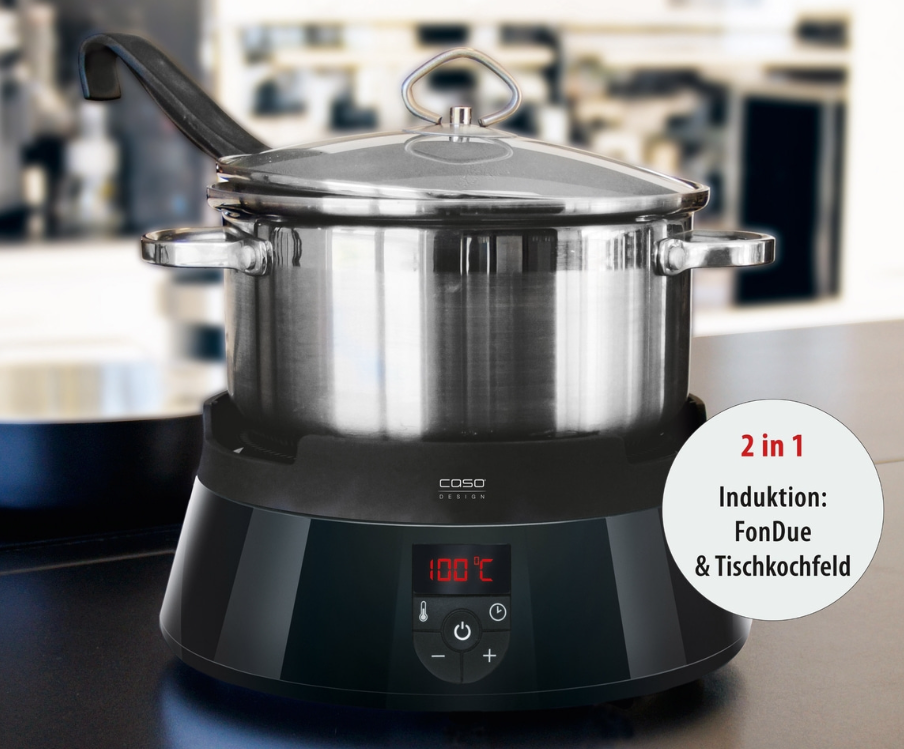 - Dù là nước xốt phô mai, béo, nước dùng - bất kể bạn thích loại fonDue nào, nồi lẩu bếp từ cảm ứng của Caso là lựa chọn phù hợp Sưởi ấm đều