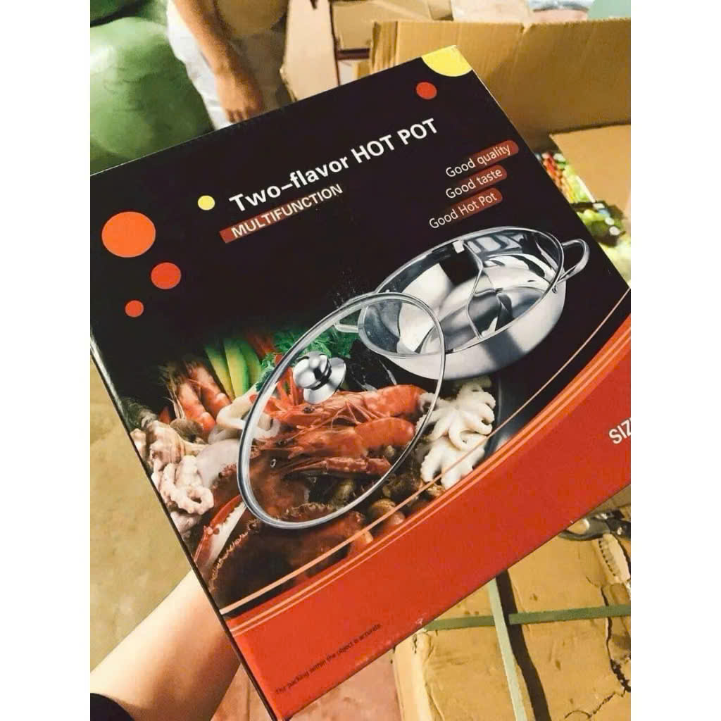 ✨Nồi Lẩu Inox 2 Ngăn 30cm Nấu Được Bếp Từ và Bếp Gas, Có Nắp Kính Chất Lượng Cao - HÀNG CHÍNH HÃNG MINIIN