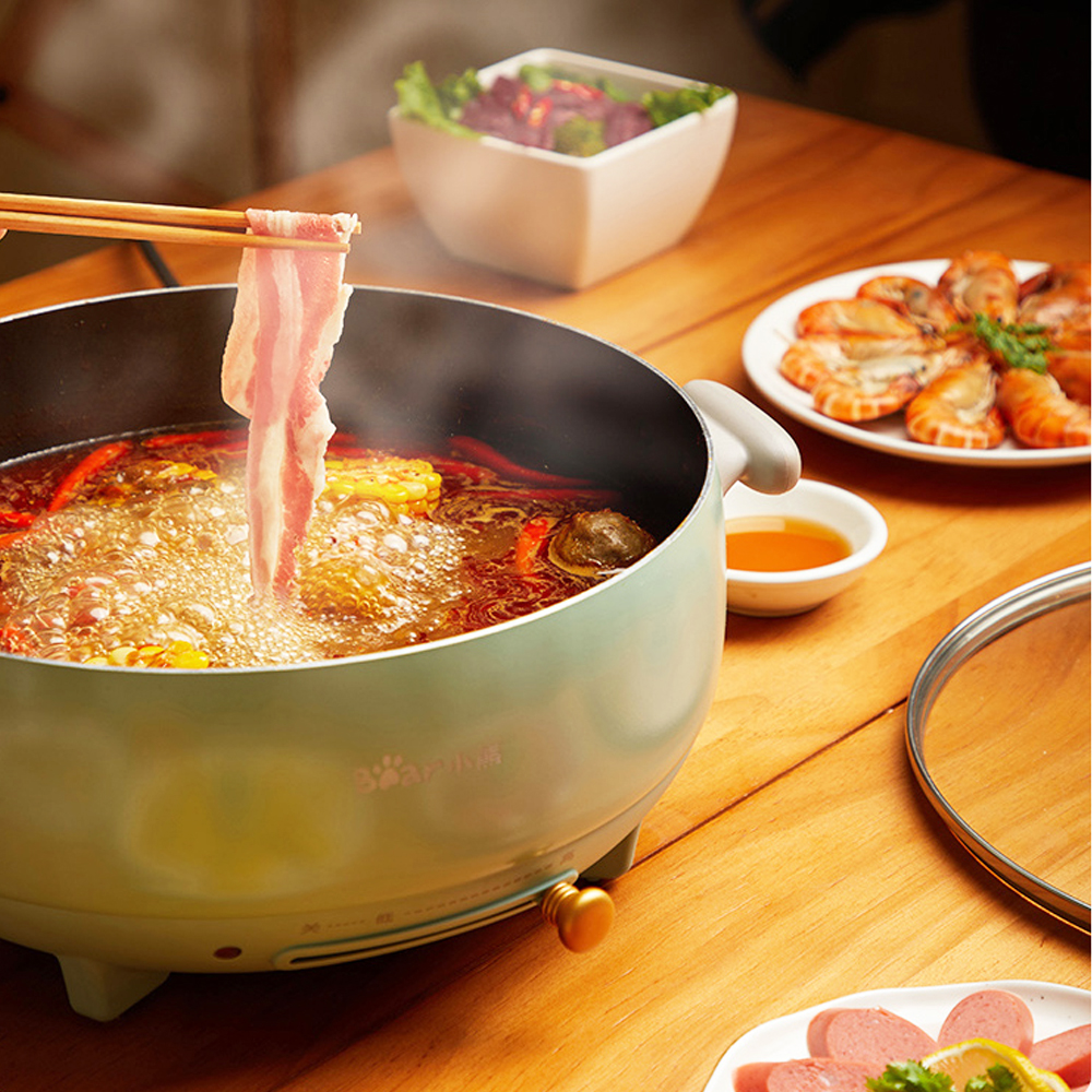 - Nồi lẩu đa năng Bear DHG-B50C1 Nồi lẩu điện dung tích lớn dùng cho 2-8 người, màu xanh - Lòng nồi chống dính, có thể dùng để chiên, xào, rang, nấu các món khác vô cùng tiện lợi.