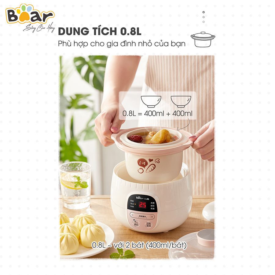 - Tên sản phẩm: Nồi Nấu Chậm 0,8L Bear SUBE001