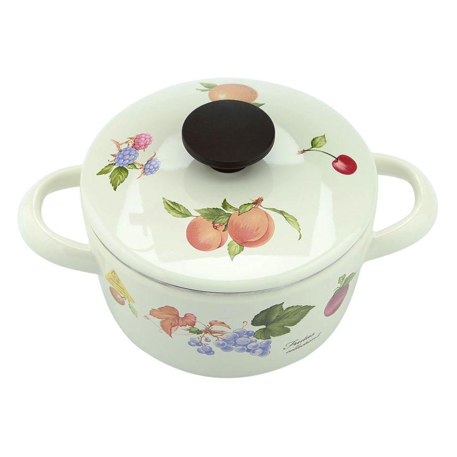 Thiết kế sang trọng, quai cầm và núm nắp chắc chắn Nồi Tráng Men Hoa Văn Trái Cây Sử Dụng Bếp Từ Fujihoro FRV-16W sở hữu thiết kế tinh tế với màu sắc và họa tiết