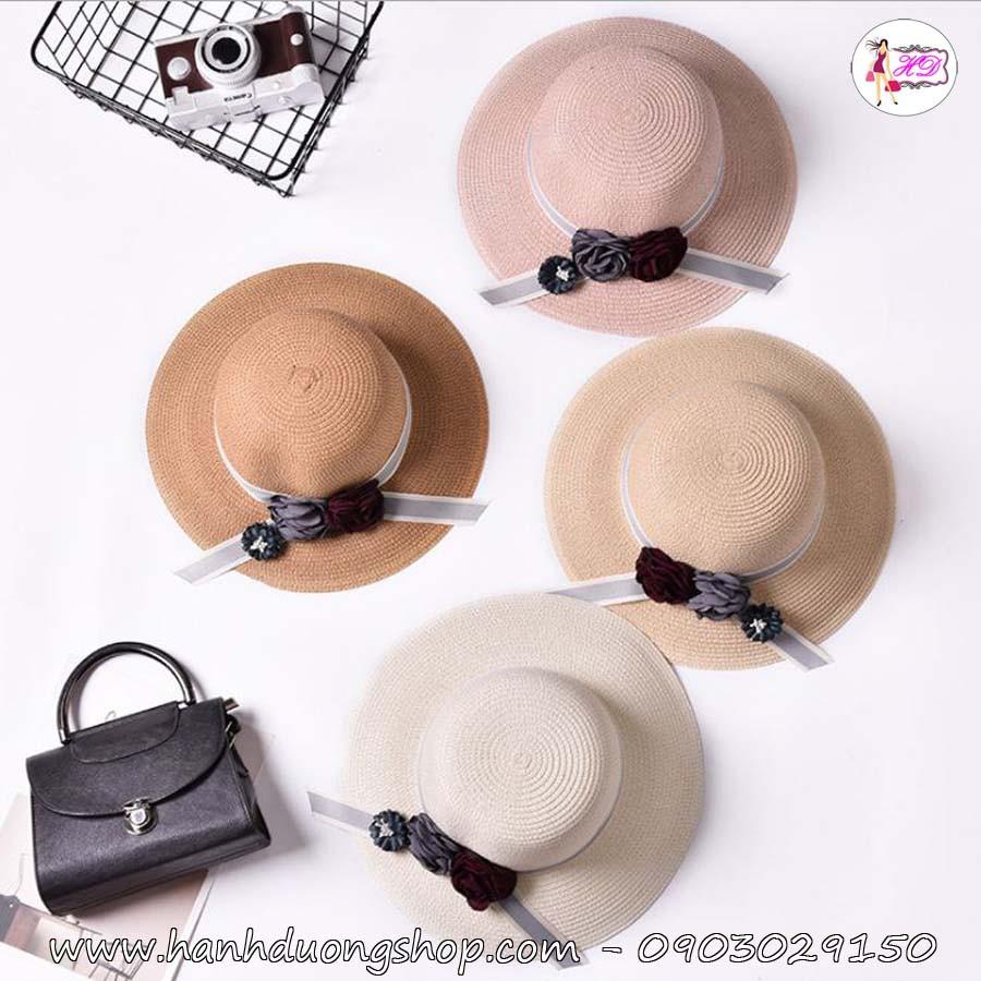 Mũ đi biển nón sơn, vành rộng 11cm chống nắng tốt, gắn nơ hoa dễ thương - Hạnh Dương Shop