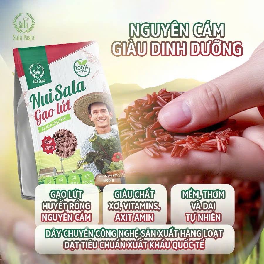 • Nui Sala gạo lứt HÌNH XOẮN phù hợp với các món xào, đút lò phô mai...được làm 100% nguyên liệu tự nhiên phù hợp với người ăn theo chế độ giảm cân hoặc chế độ ăn gạo lứt. Hỗ trợ kiểm soát cân nặng và giữ dáng hiệu quả