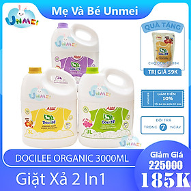 Nước Giặt Xả Quần Áo Em Bé Docilee 2in1 với hương thơm diu nhẹ, chứa các thành phần tự nhiên như dầu dừa, bột ngô và thành phần pH trung tính giữ quần áo không bị hư hại trong quá trình giặt và mềm dịu với da tay.