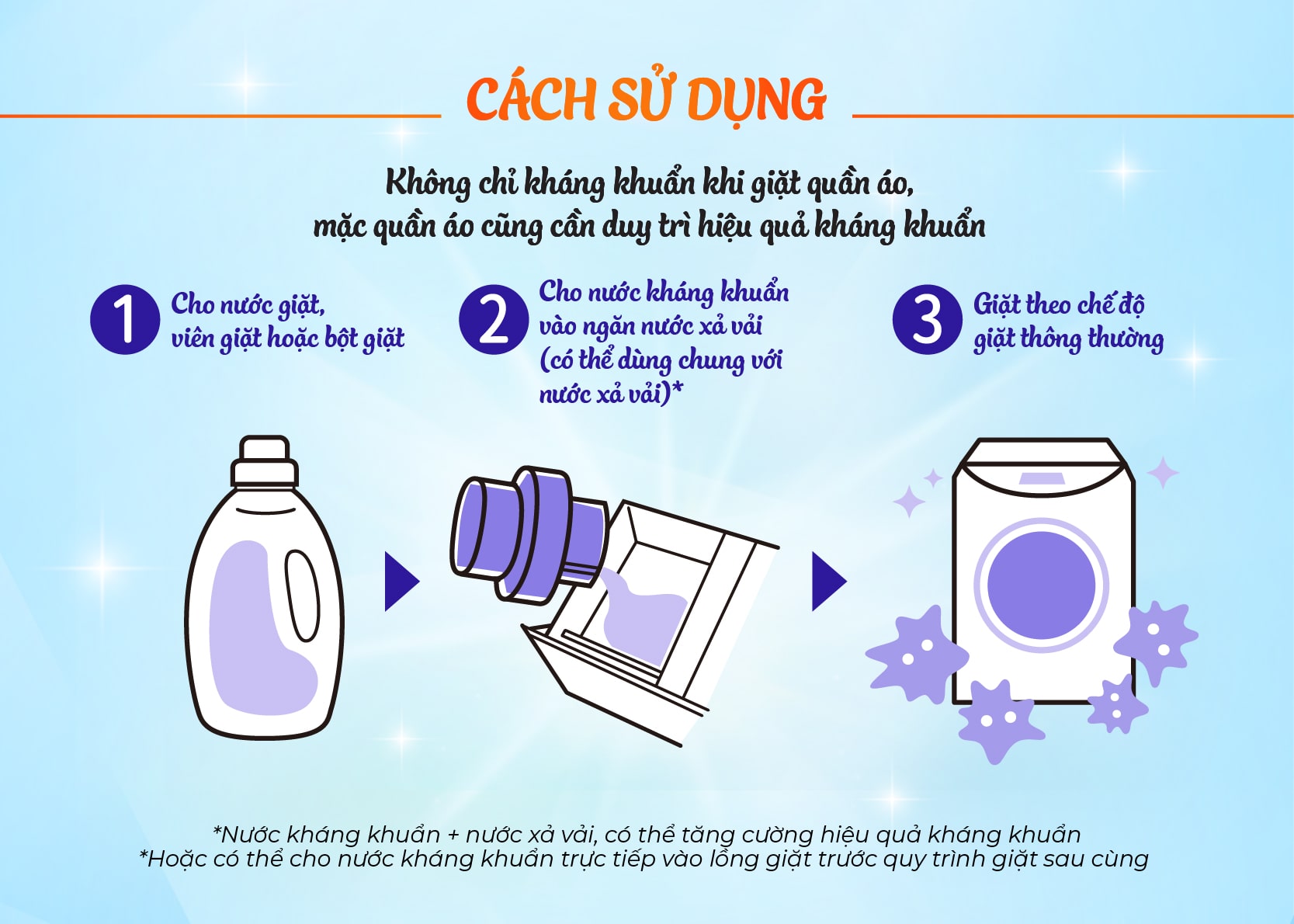 - Thêm nước kháng khuẩn khi giặt quần áo nâng cao hiệu quả diệt khuẩn & khử mùi