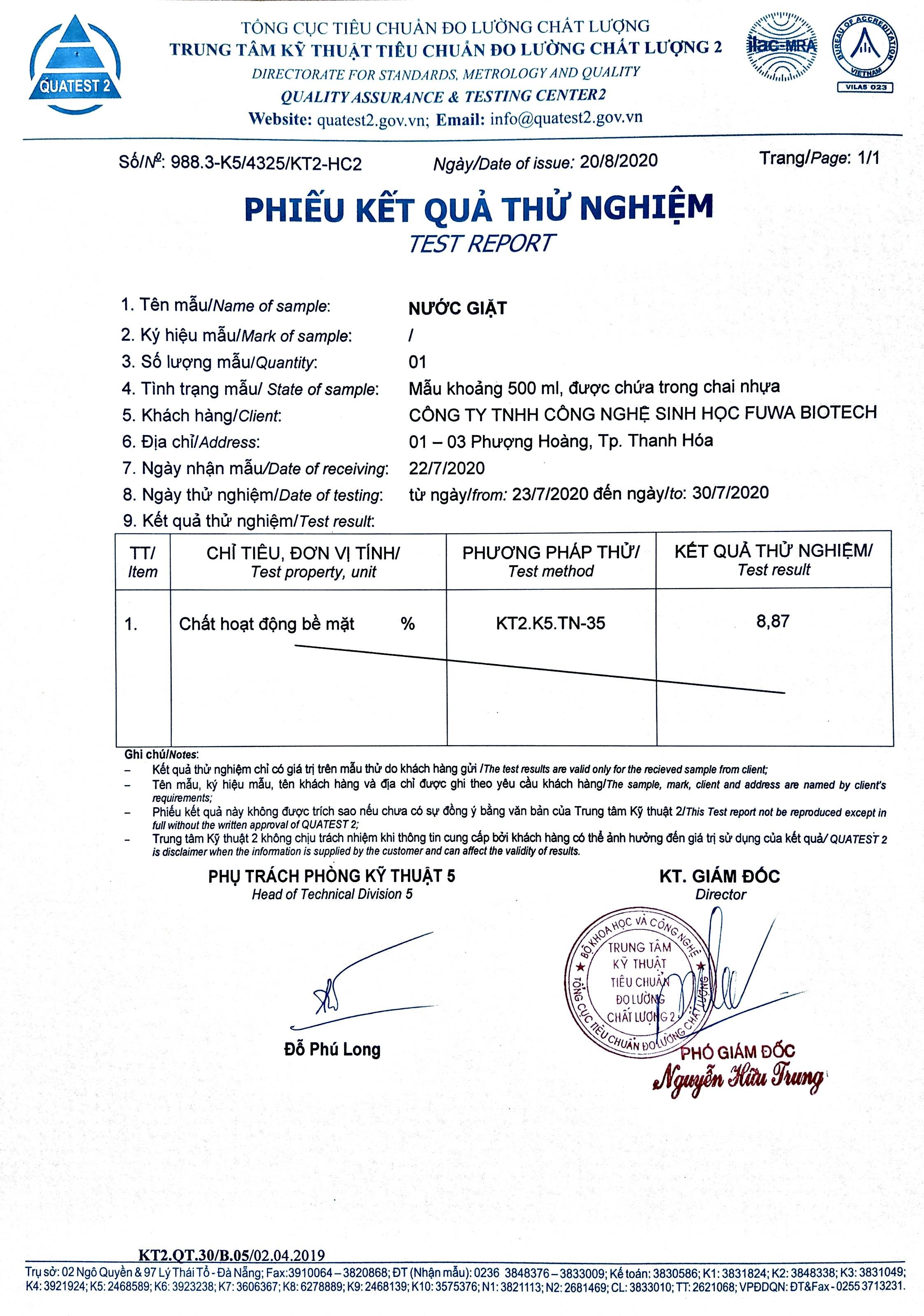 • Wastewater can clean sewers Usage: Dispense 60ml for 20-25 pieces of clothes Storage: Keep in a dry place, avoid direct sunlight & temperature < 45°C EXP: 18 months from the manufacturing date, 06 months after opening Notices: This product is less foamy than conventional chemical products Basic standards apply: TCCS006:2020/CSF Manufactured by: FUWA BIOTECH BIOTECHNOLOGY CO., LTD