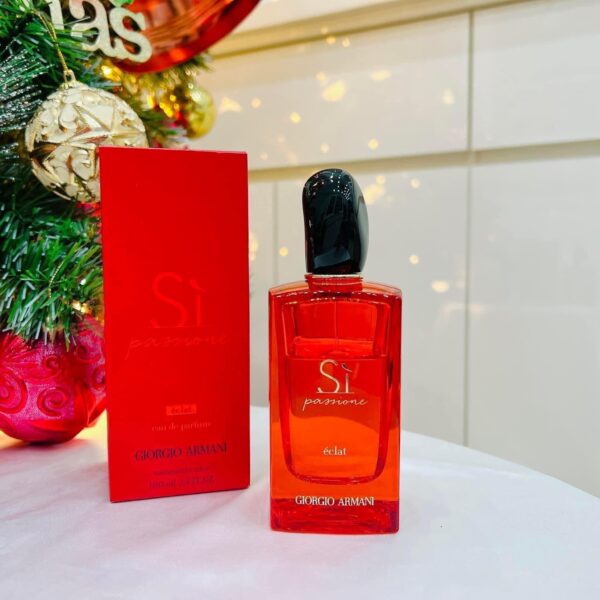 Giorgio Armani Sì Passione Eclat với thiết kế màu đỏ trong suốt, mang trong mình sự hiện đại và đậm nét nữ tính, hương thơm Éclat nồng nàn, đam mê, duyên dáng và độc đáo.